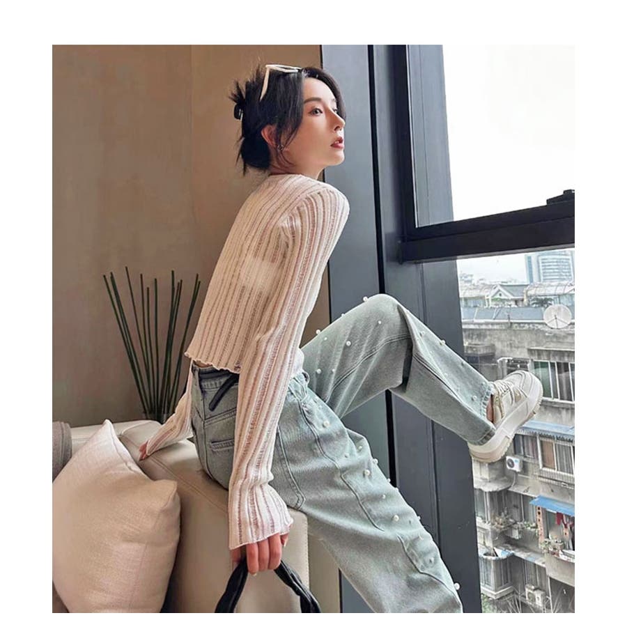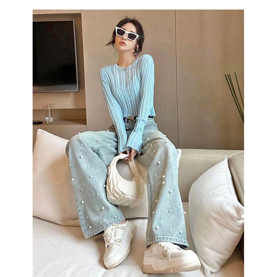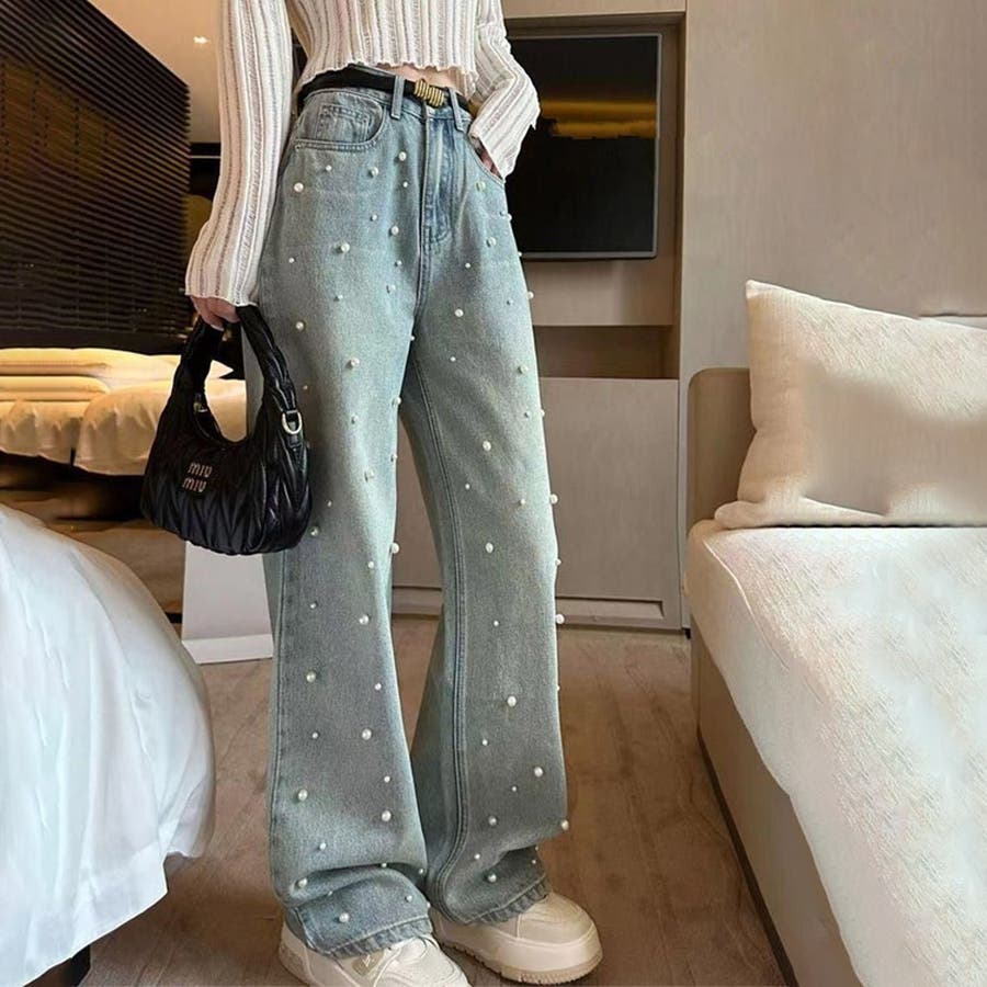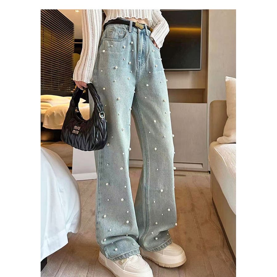 パール付デニムパンツ 春 夏