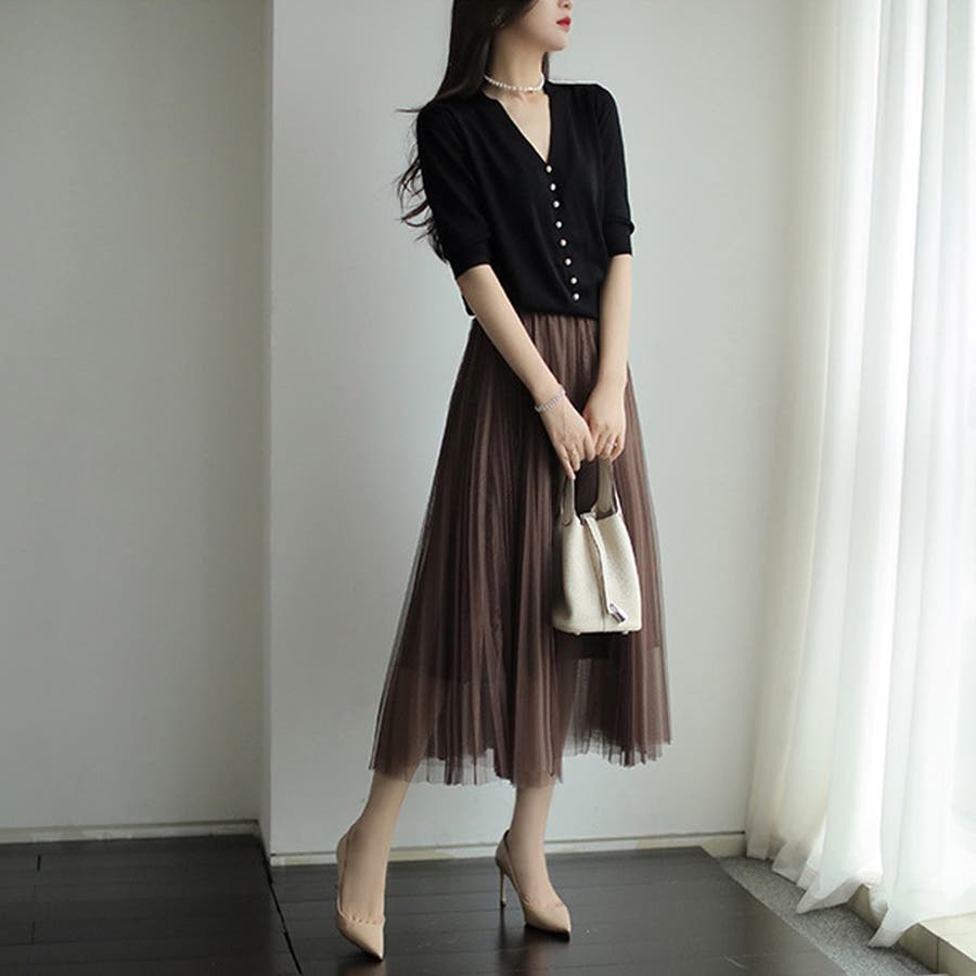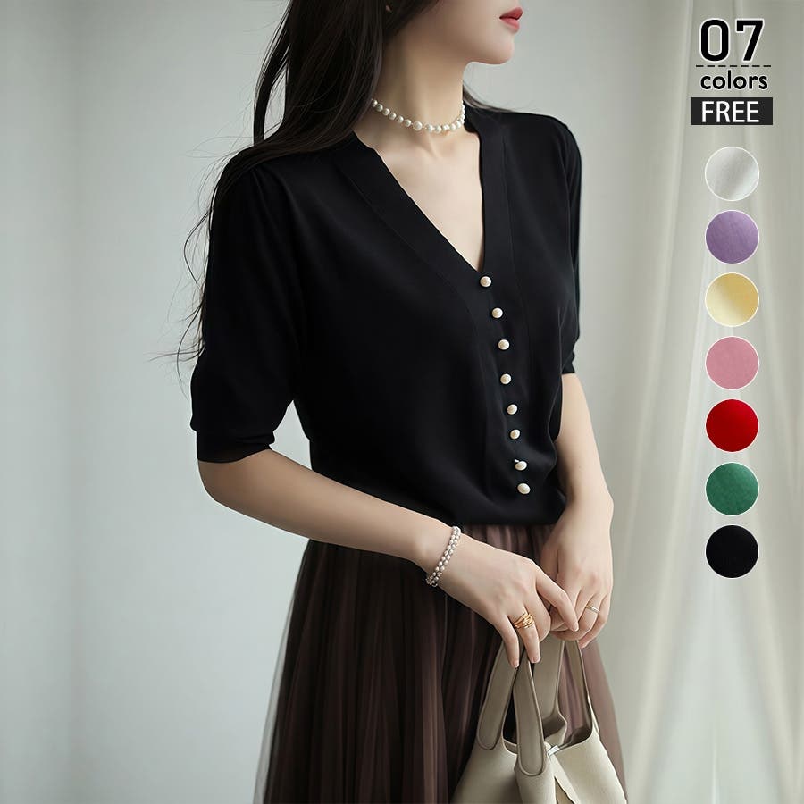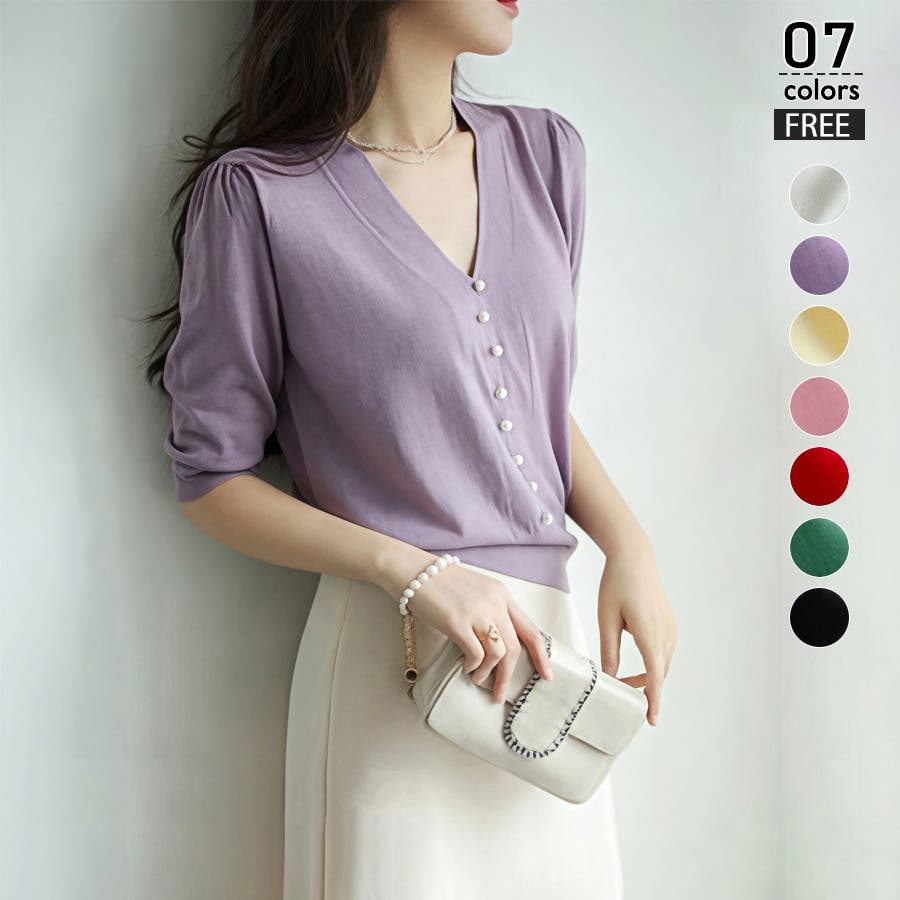 無地でありながらも、その着回しの良さは無限大。どんなボトムスとも相性が良く、一枚持っていると非常に便利です。