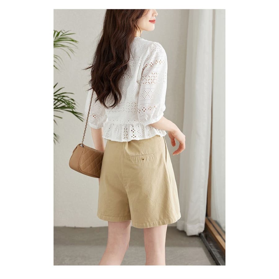 このブラウスは、カジュアルなデイリーウェアとしてはもちろん、ちょっとしたお出かけやオフィスカジュアルにも最適です。軽やかな素材感で夏の暑い日でも快適に過ごせるため、多くの女性にとって必須のアイテムになることでしょう。シンプルながらもディテールにこだわったこのブラウスは、どんなボトムスとも相性が良く、様々なスタイリングが楽しめます。