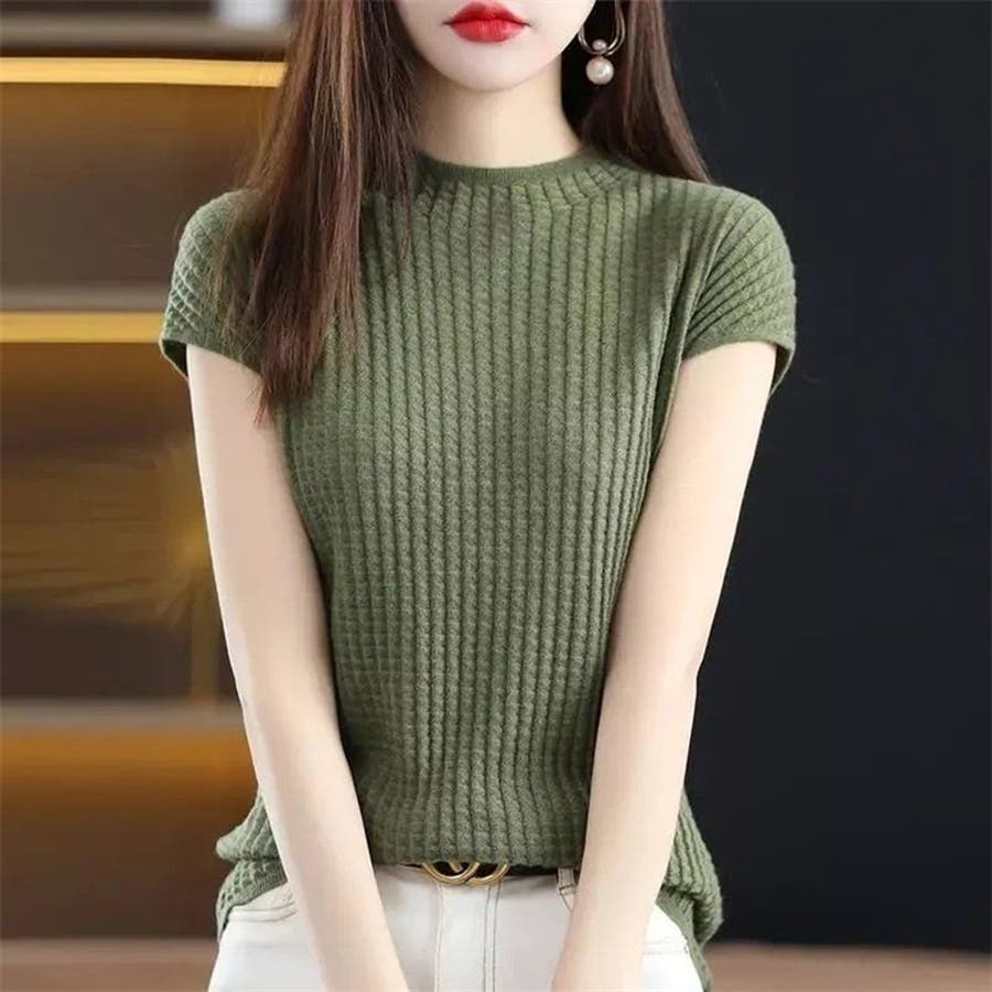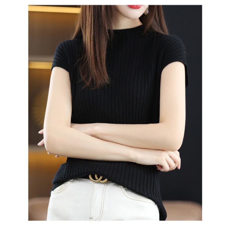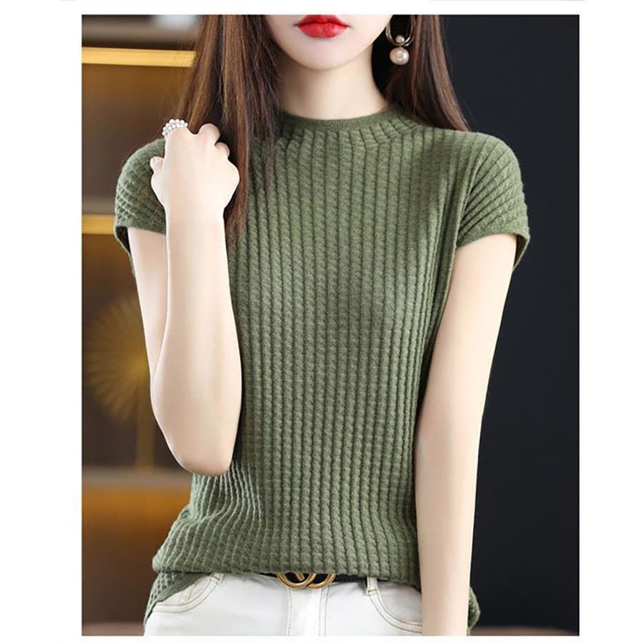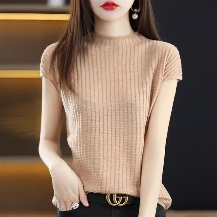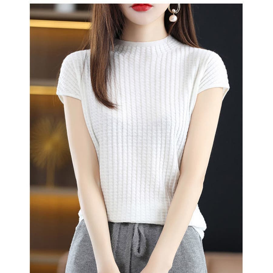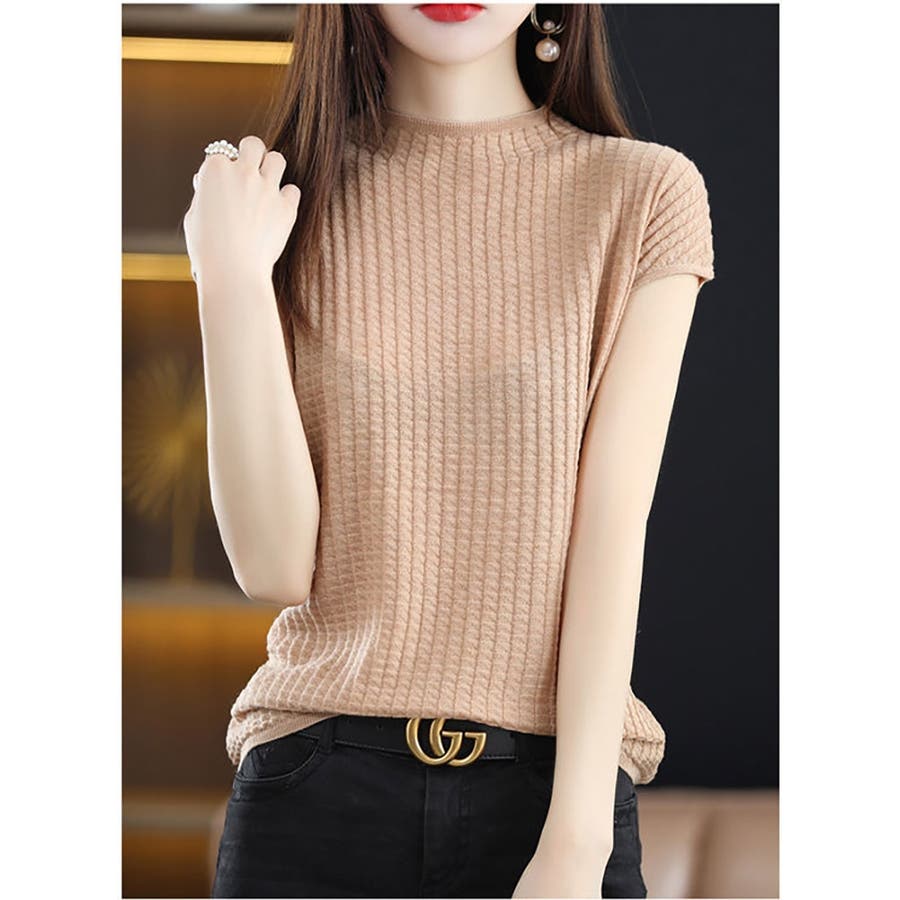 このレディースサマーニットは、オフィスカジュアルにもぴったりな洗練されたデザインが特徴です。上品なリブ編みのディテールが特徴的で、どんなアウターにもスムーズに合わせやすい一枚です。