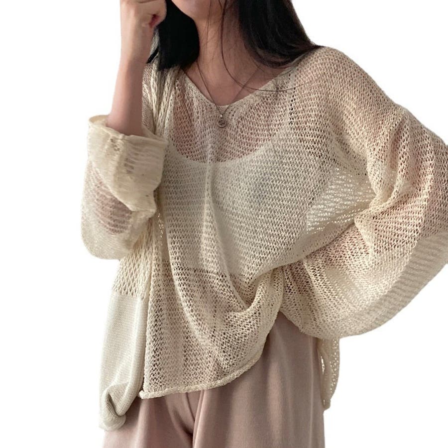 この春夏にぴったりの薄手の防晒効果がある長袖のニットは、シンプルでありながらも洗練されたデザインが特徴です。