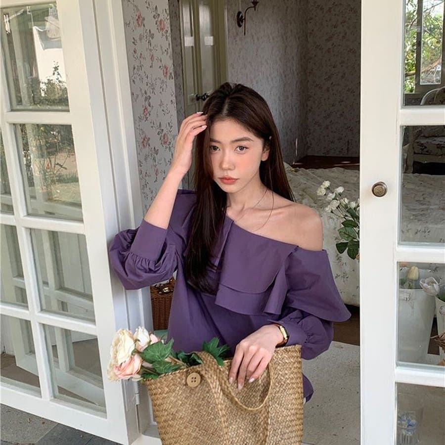 肩をさりげなく見せるワンショルダー風デザインで抜け感があり、春らしい軽やかなスタイルを叶えます。