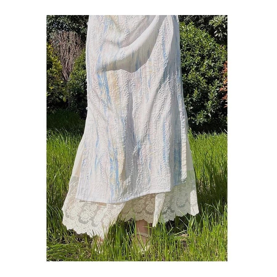 サイズ | Fサイズ 着丈:約89cm ヒップ:約98cm 裾幅:約94cm 着用モデル:身長160cm フリーサイズ着用 |