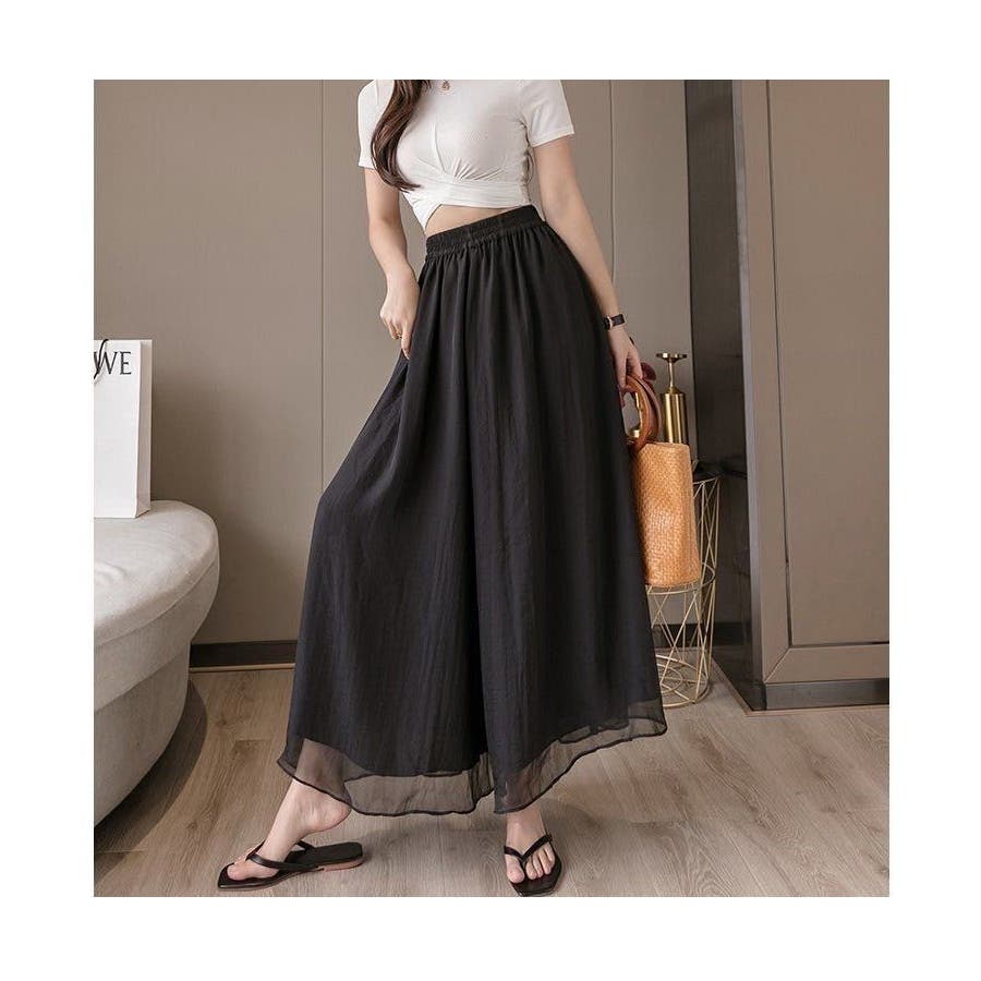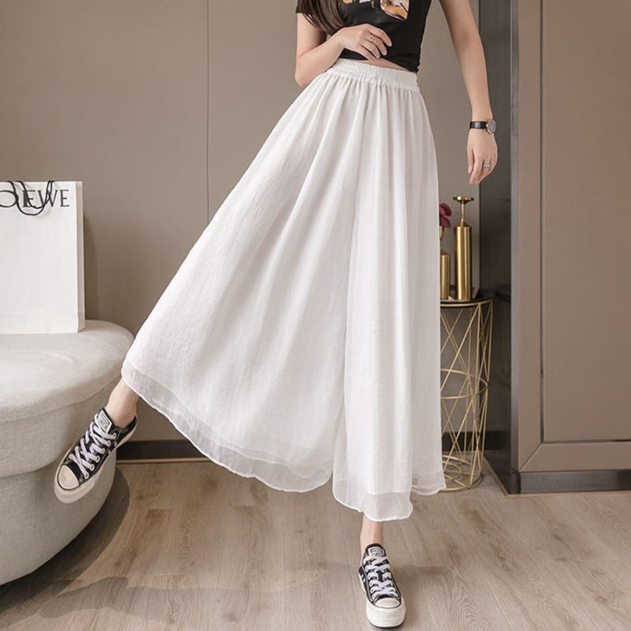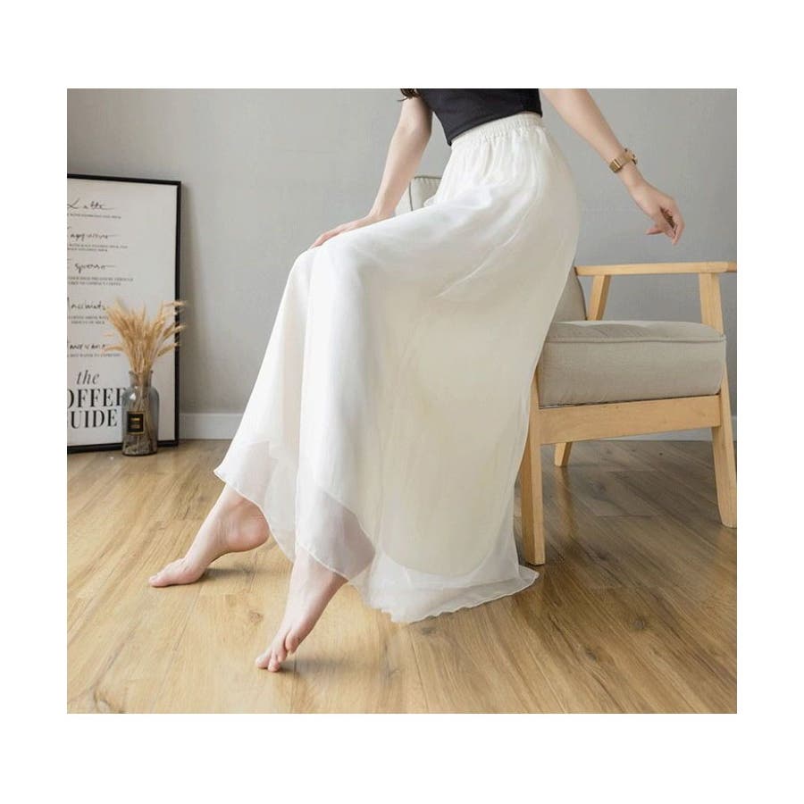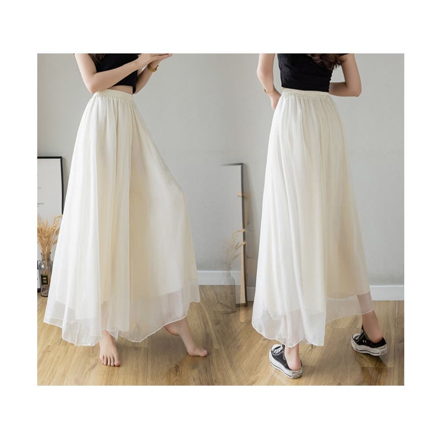 ワイドパンツ ガウチョパンツは、女性らしさを引き立てるエレガントなデザインが特徴です。ふんわりとしたシルエットとロング丈が、動くたびに優雅な印象を与えます。