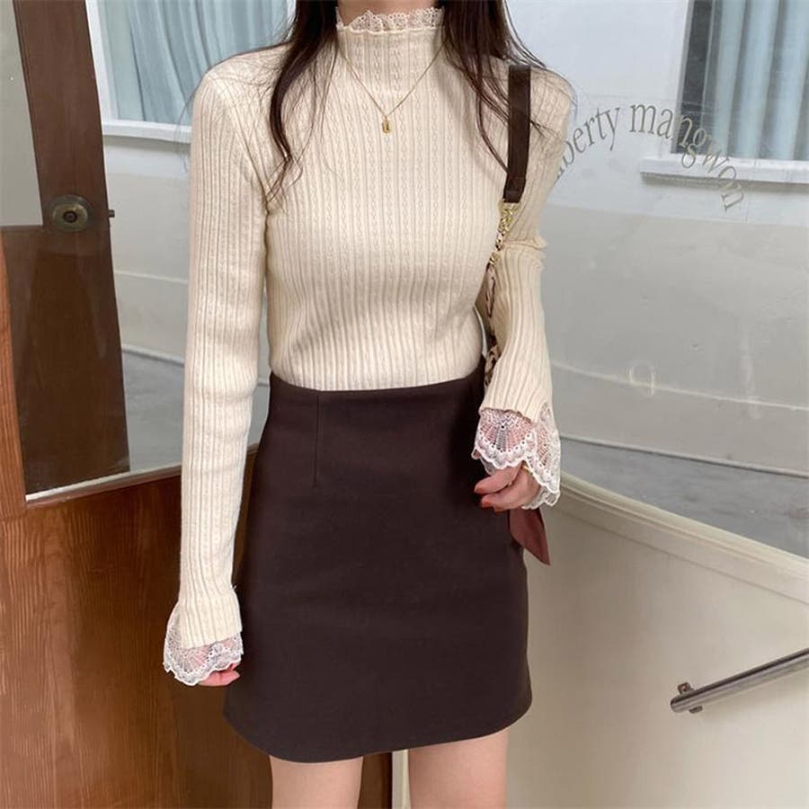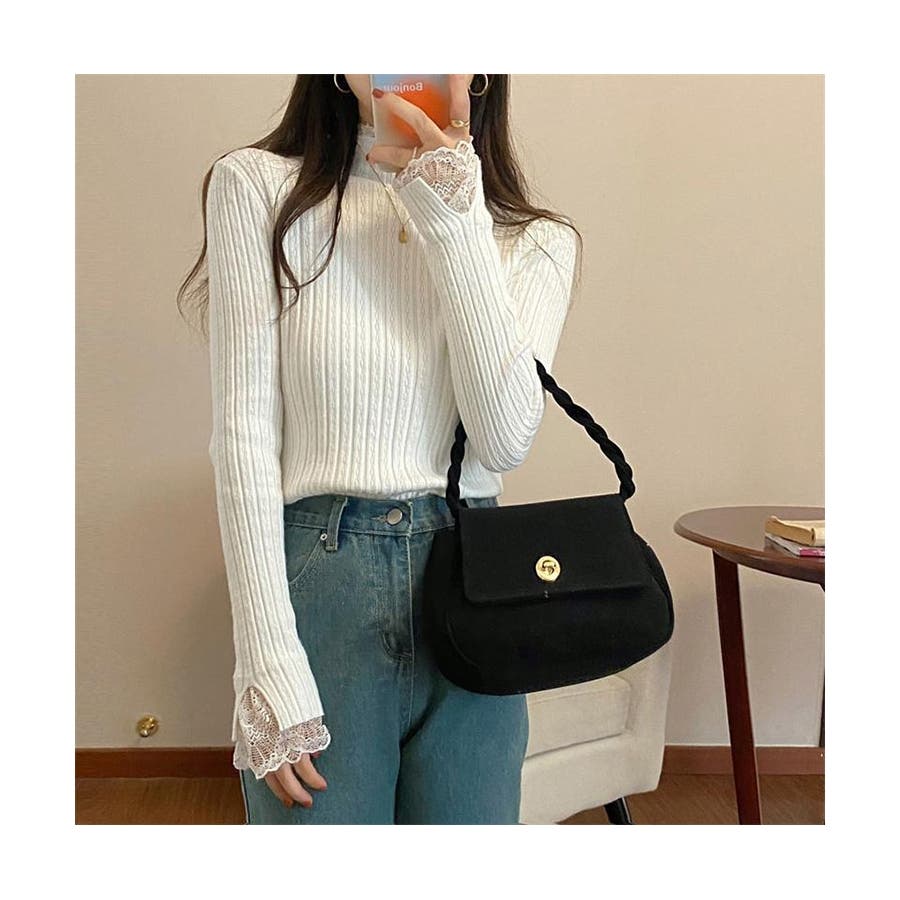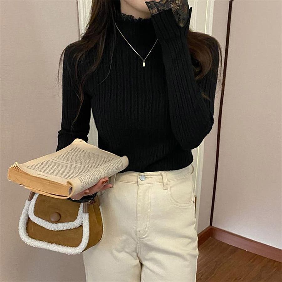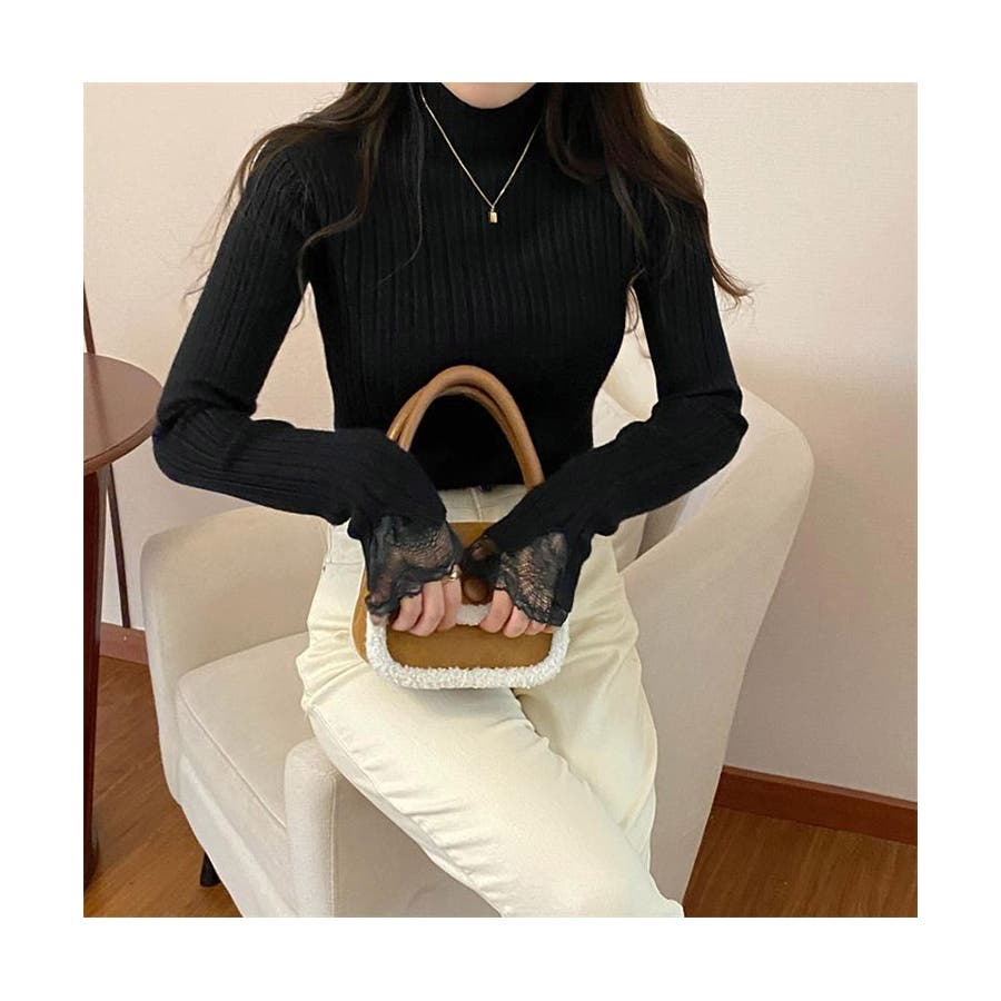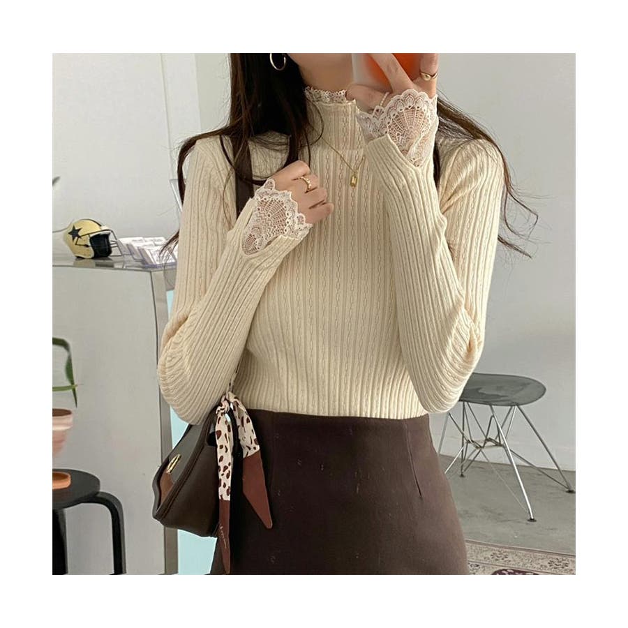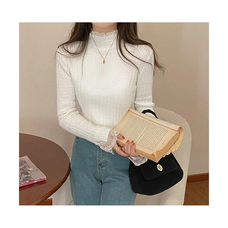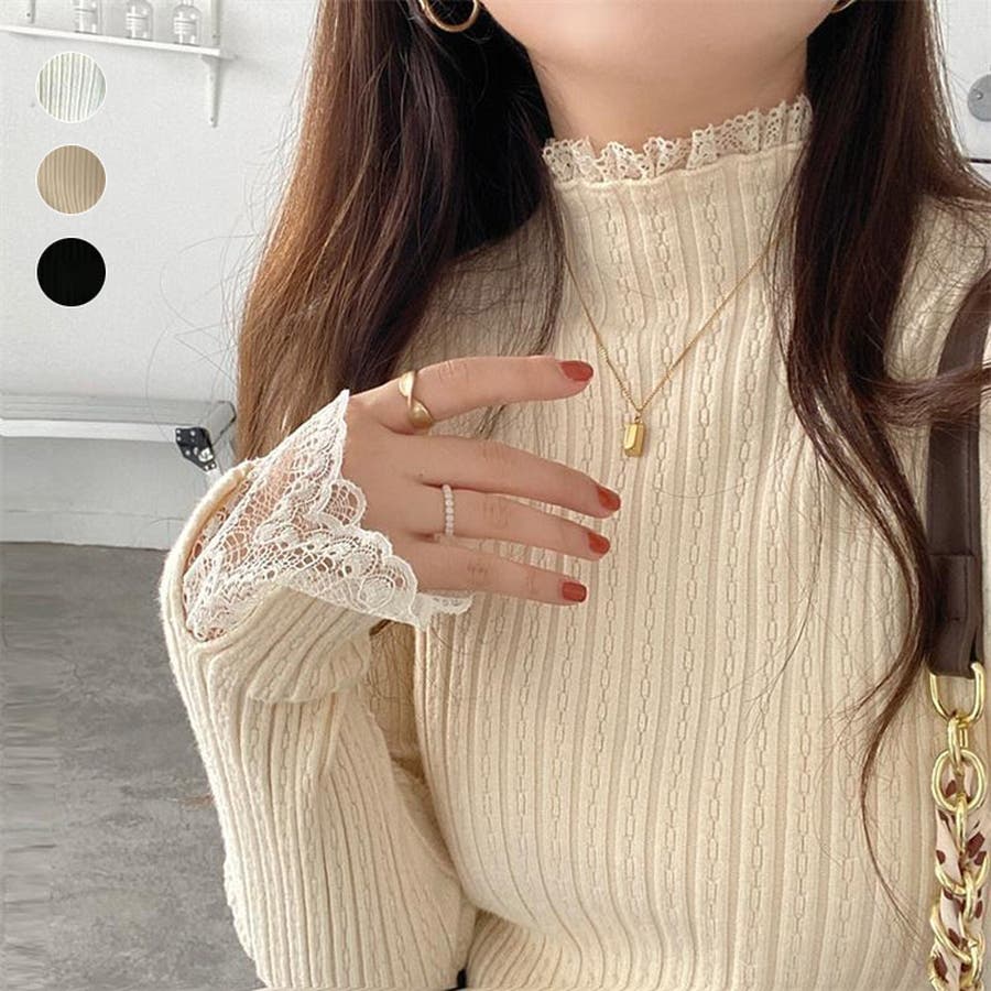 ハーフタートルネック リブニット レース