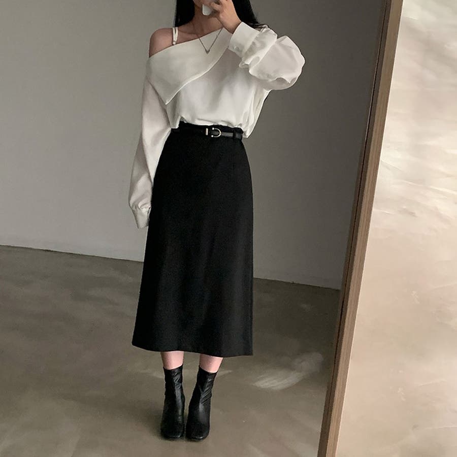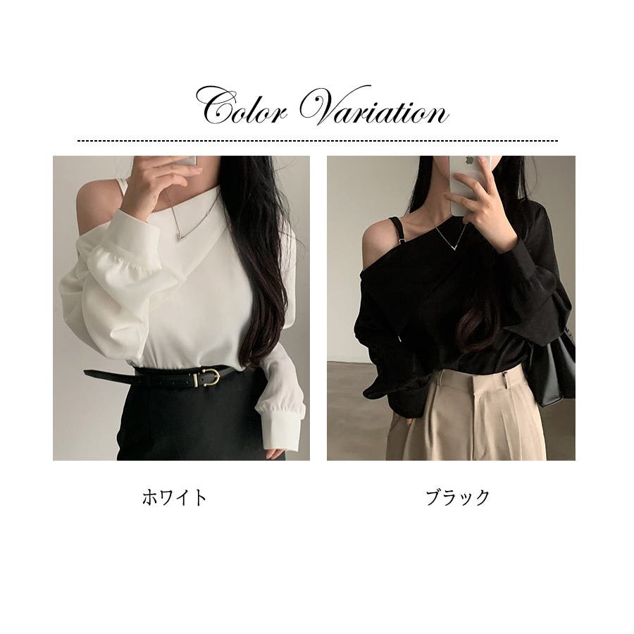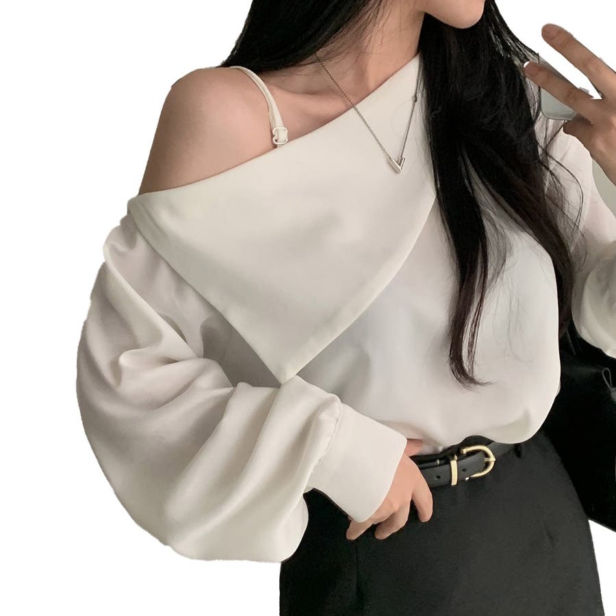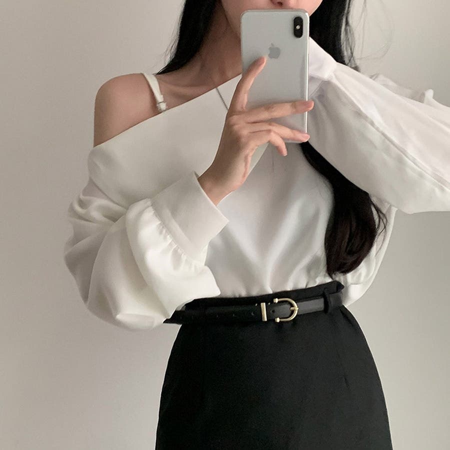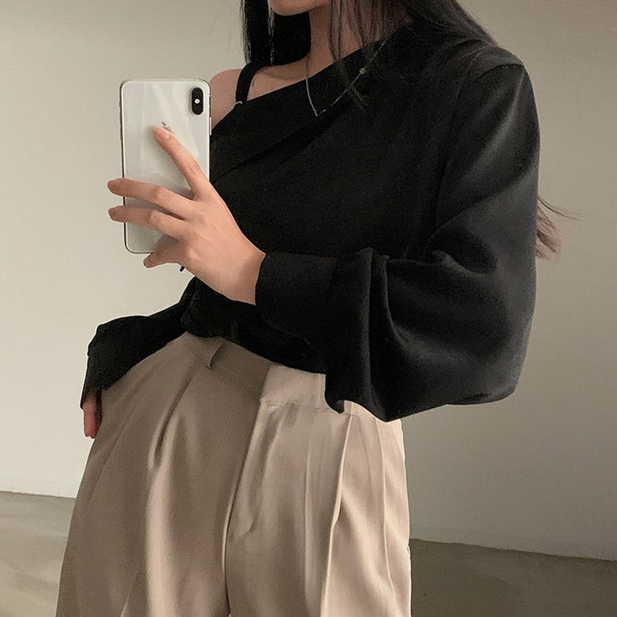 このワンショルダー長袖Tシャツは、春や秋にぴったりのスタイリッシュなアイテムです。