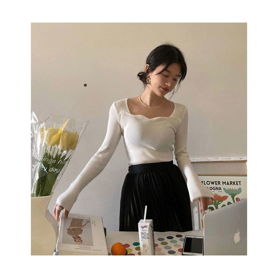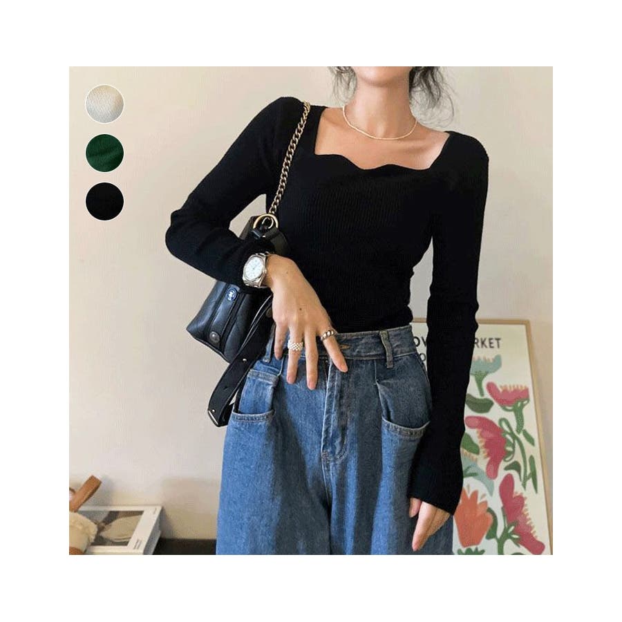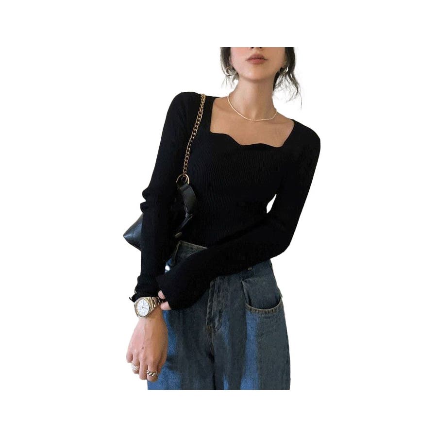 長袖 ニット おしゃれ セーター シンプル リブニット