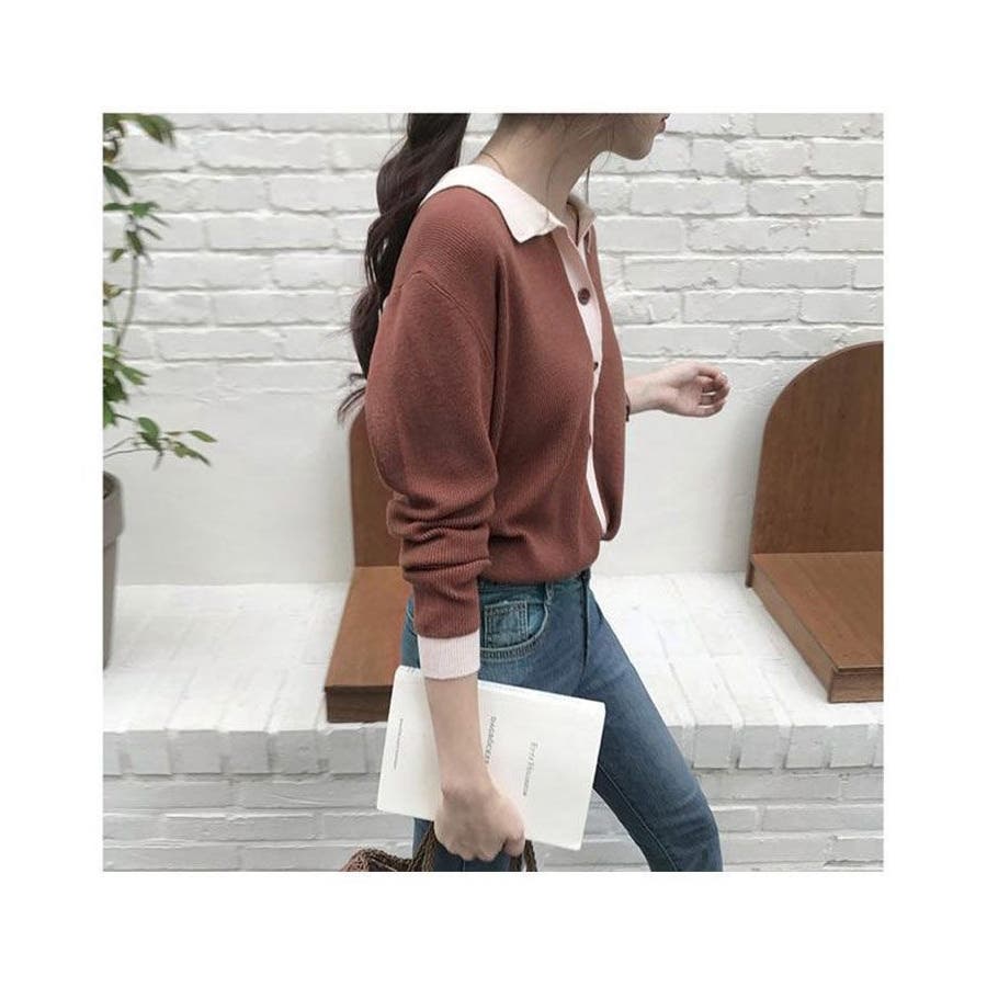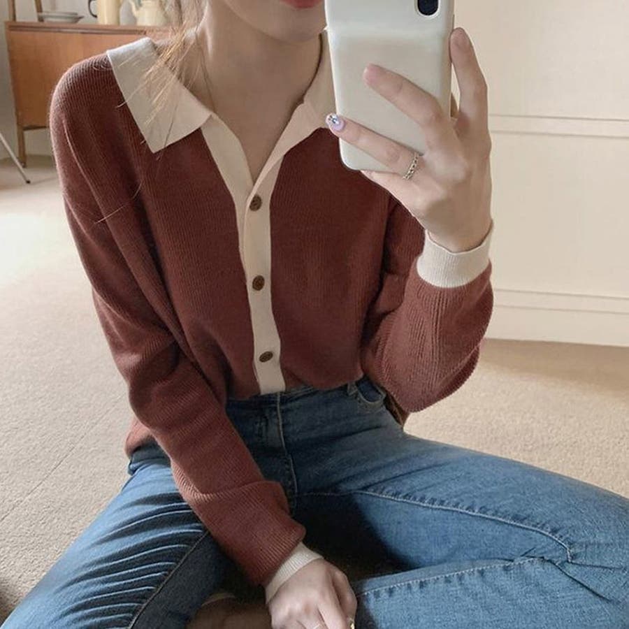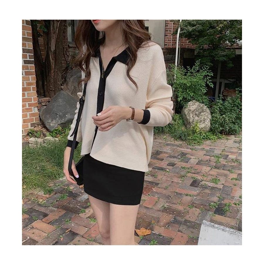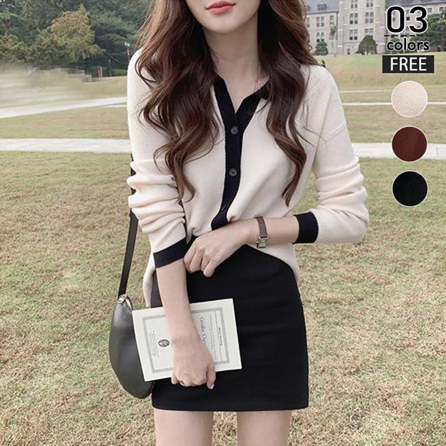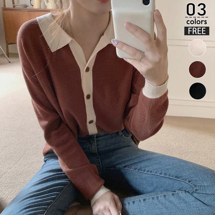 襟元と袖口、前立て部分に施されたコントラストカラーがポイントで、シンプルながらもおしゃれ見えを叶えます。