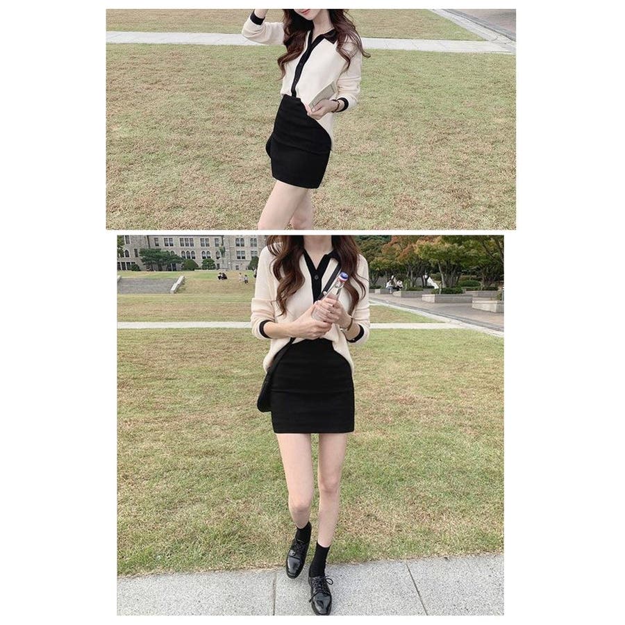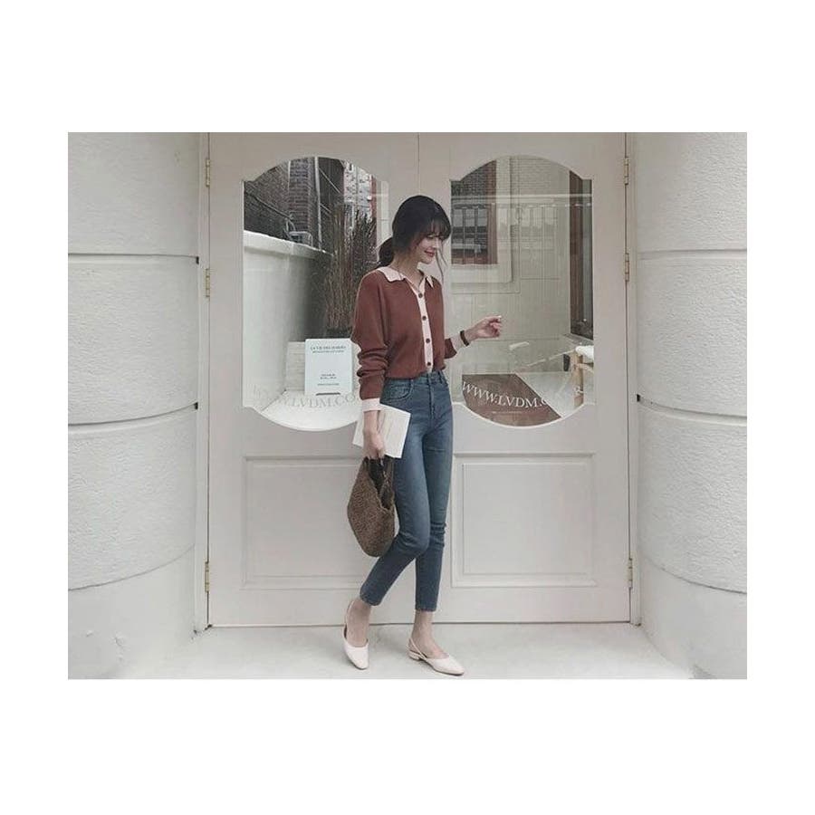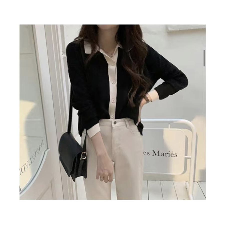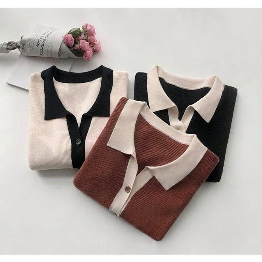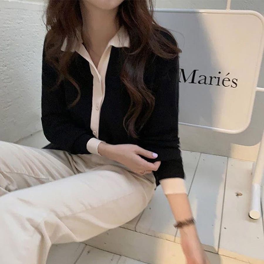 襟元と袖口、前立て部分に施されたコントラストカラーがポイントで、シンプルながらもおしゃれ見えを叶えます。