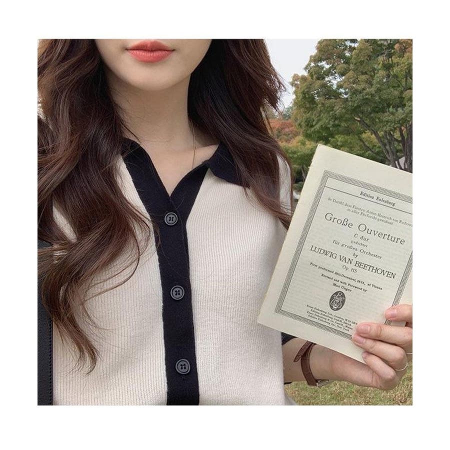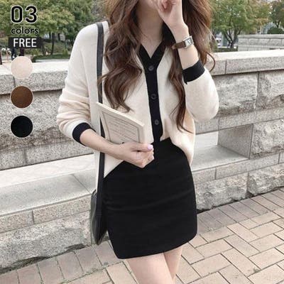 上品で大人可愛い配色デザインが魅力のカーディガン。