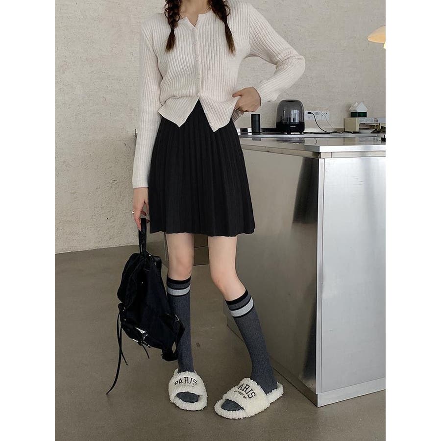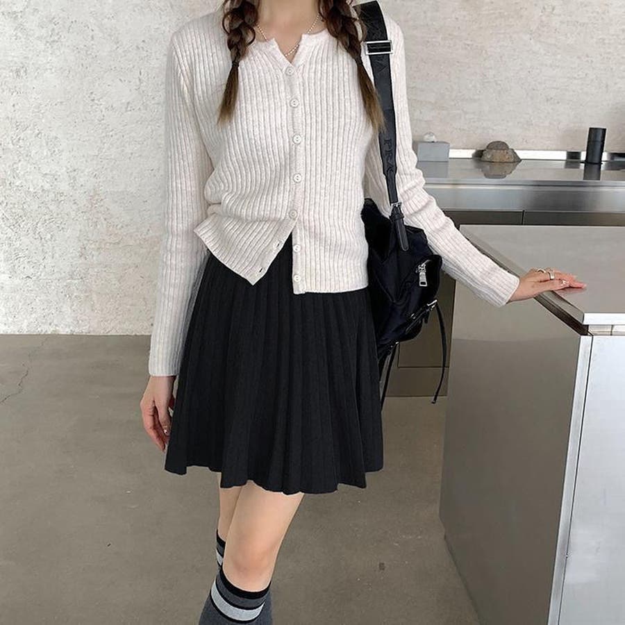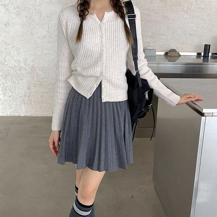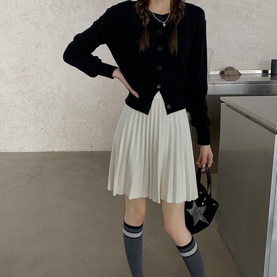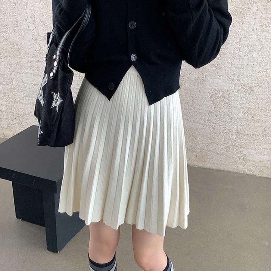 動くたびにふわっと揺れるシルエットが魅力のプリーツスカート。