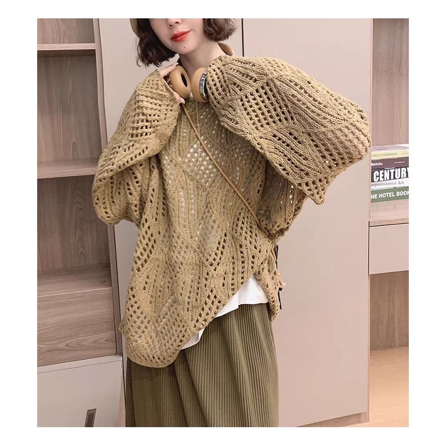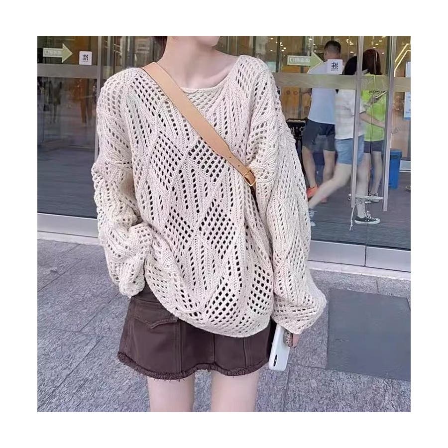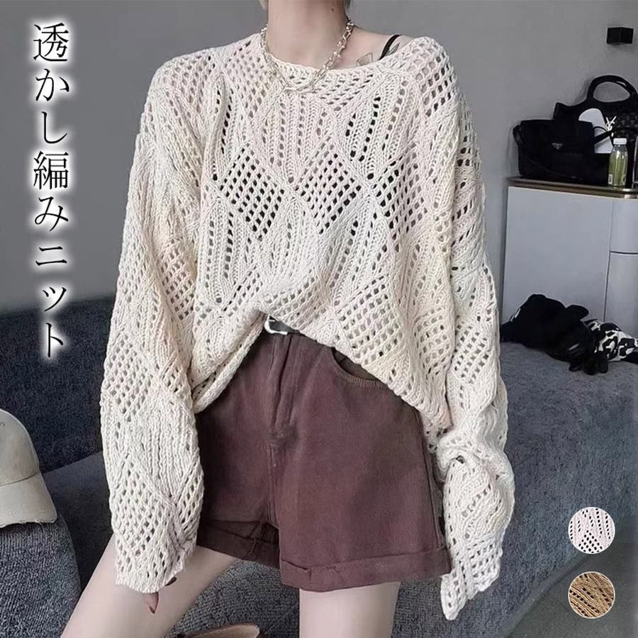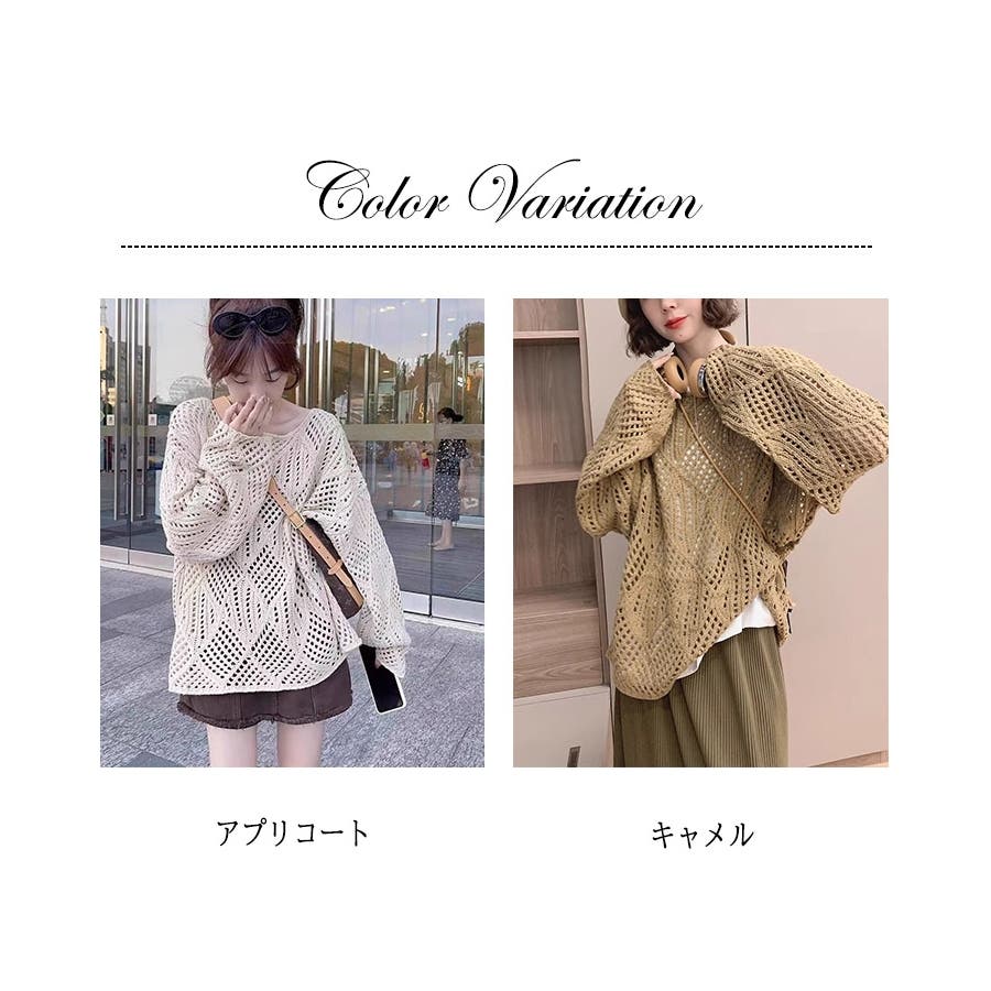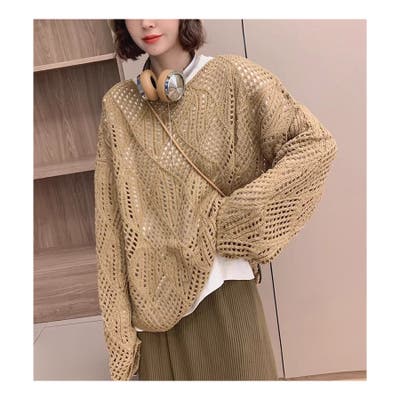 【アプリコット】透かし編みニット レディース 長袖 メッシュ レイヤード ゆったり 春秋 韓国