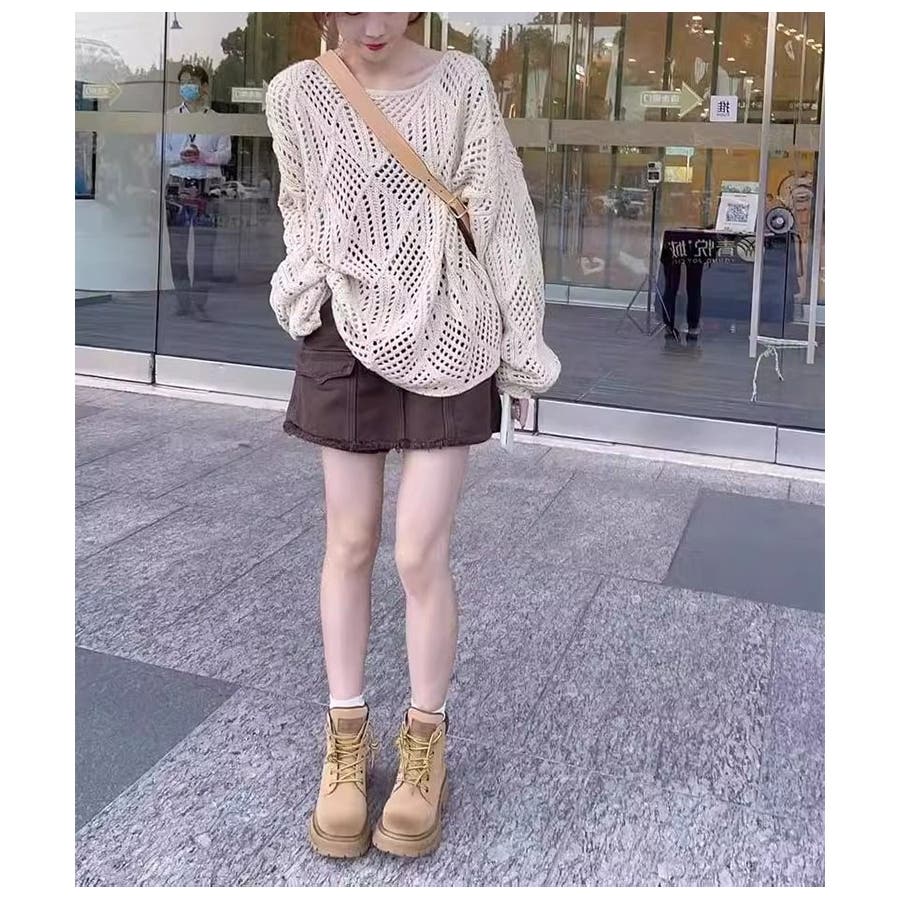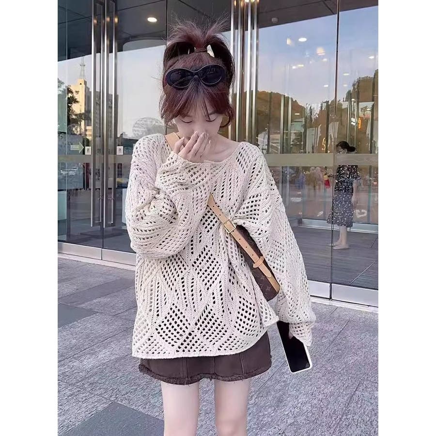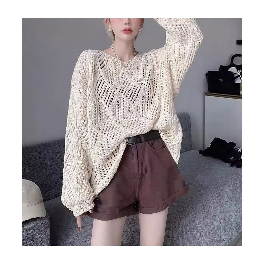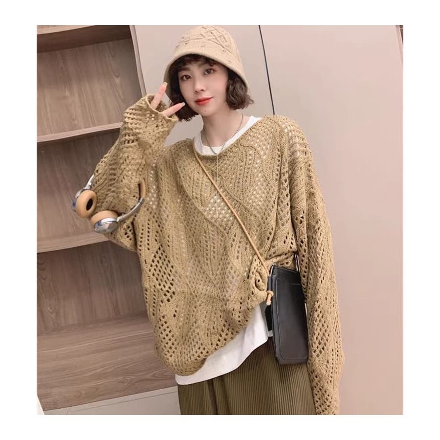 【アプリコット】透かし編みニット レディース 長袖 メッシュ レイヤード ゆったり 春秋 韓国