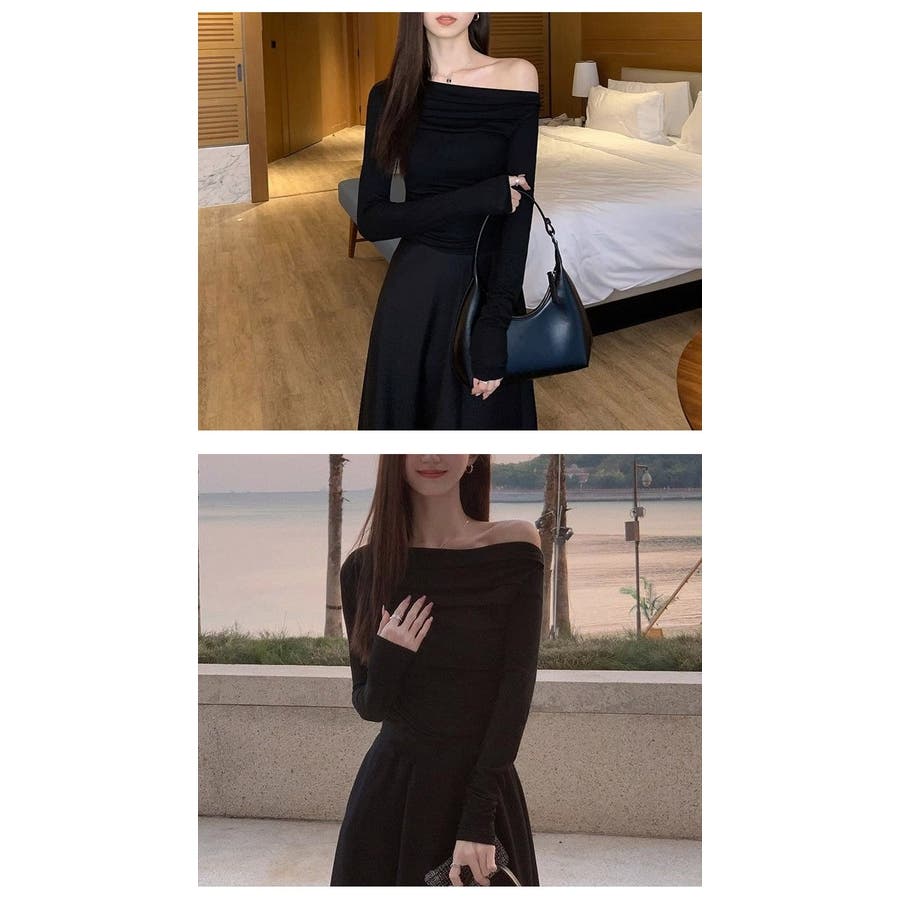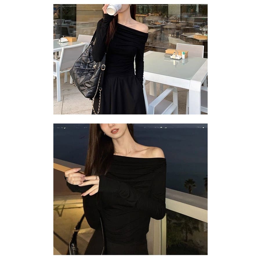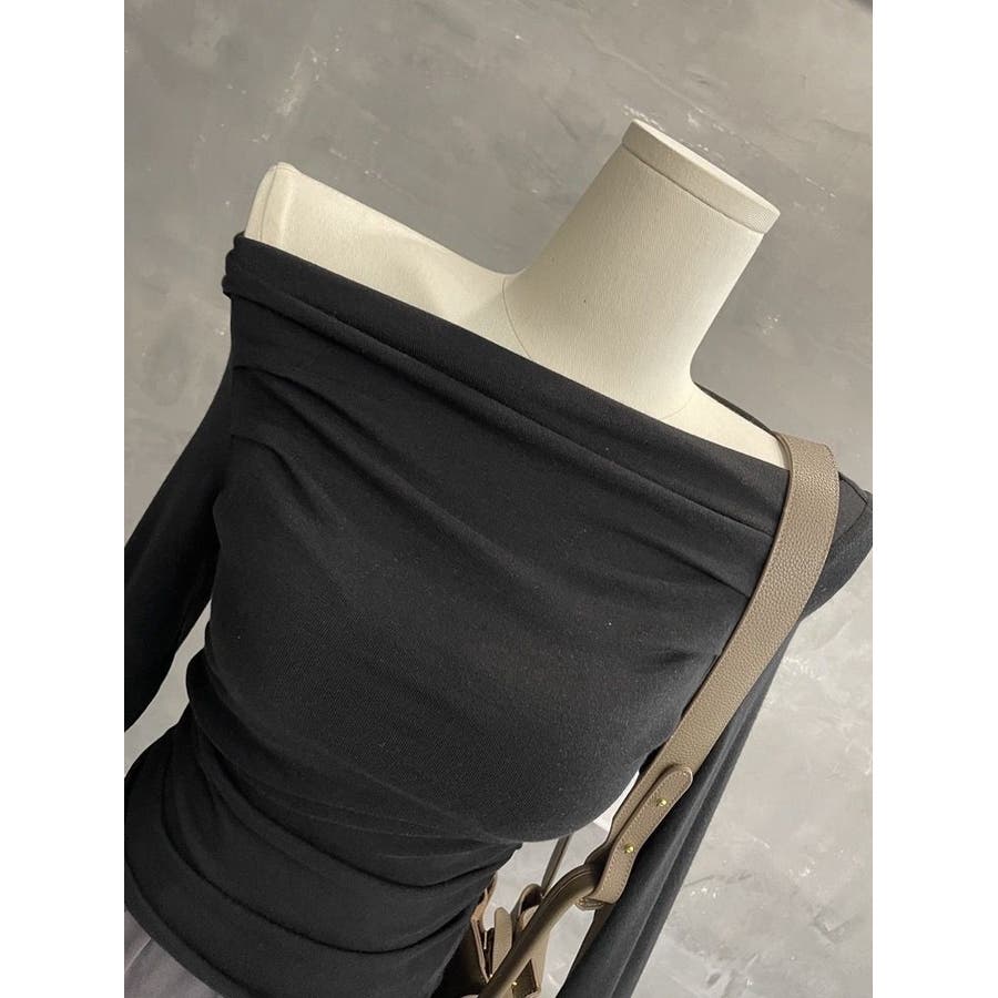肩をさりげなく見せるデザインが特徴で、セクシーさとおしゃれさを兼ね備えています。