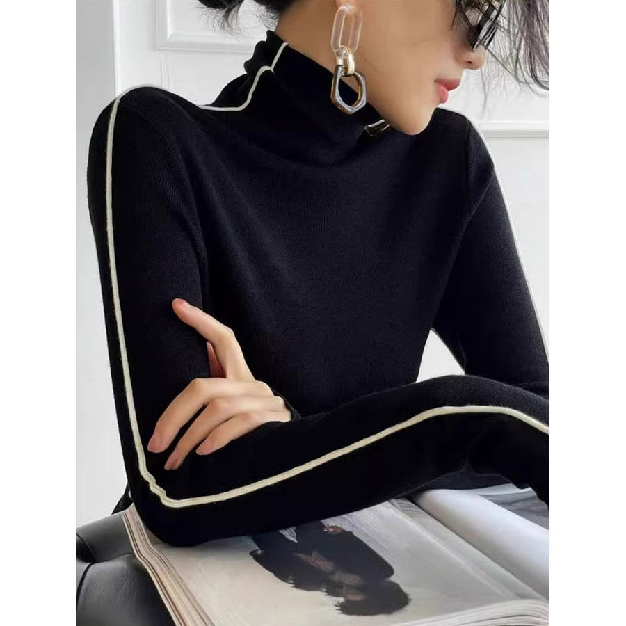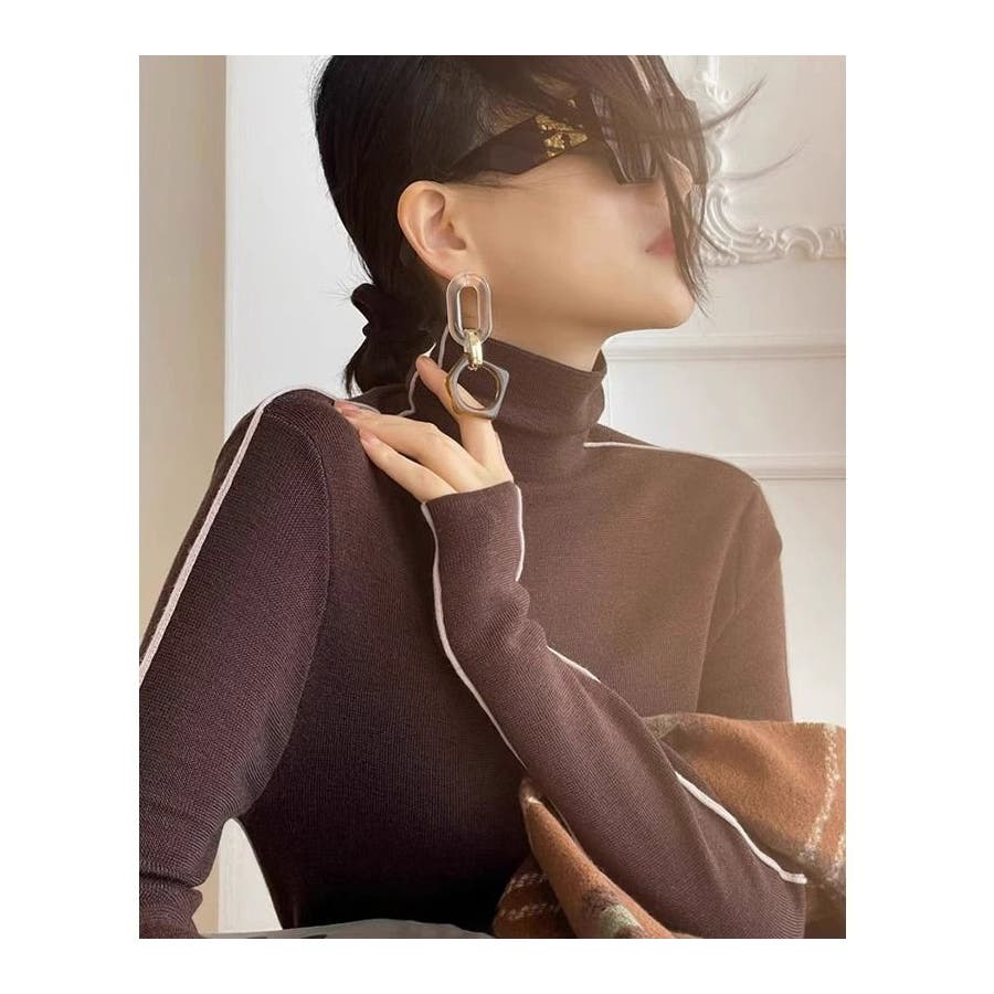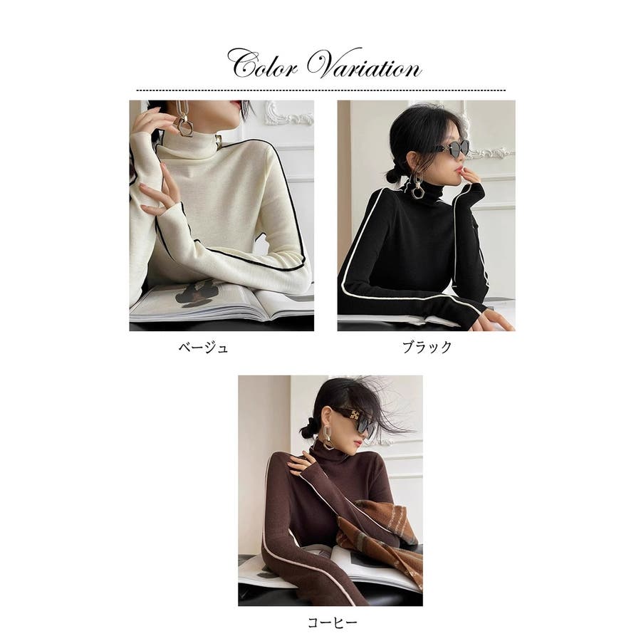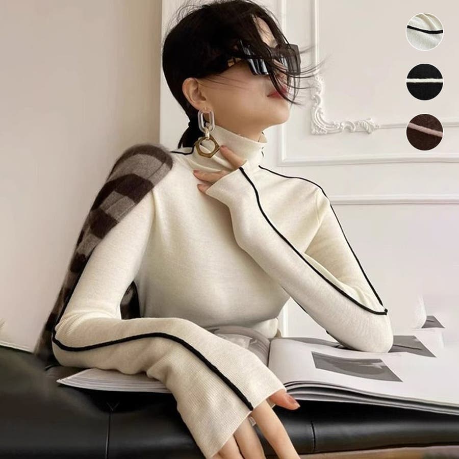 バイカラーのハイネックニットは、シンプルながらも洗練されたデザインが特徴です。