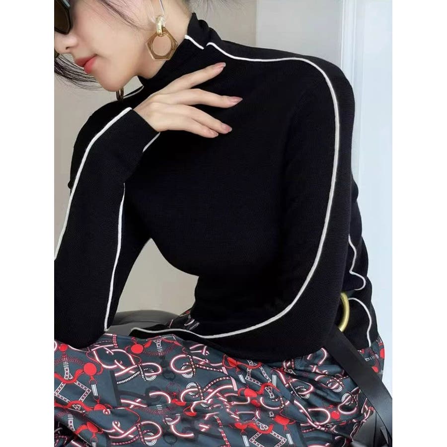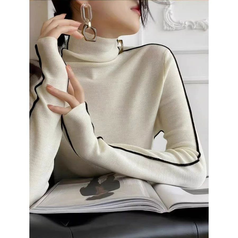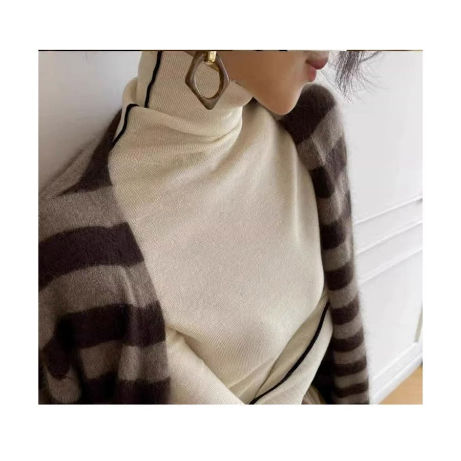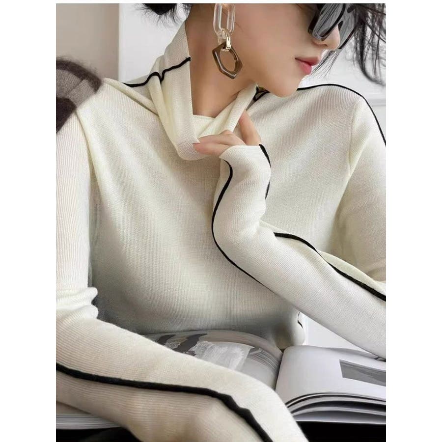 バイカラーのハイネックニットは、シンプルながらも洗練されたデザインが特徴です。