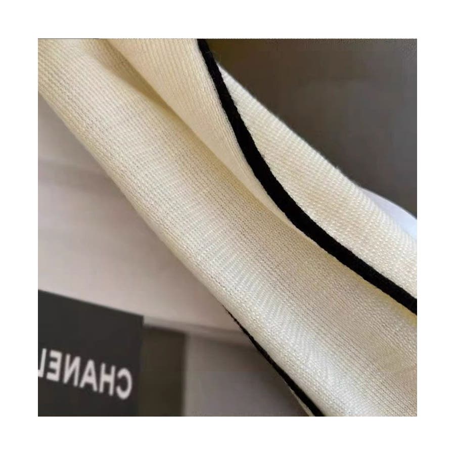 長袖のリブニットは、配色が美しく、着痩せ効果を期待できます。
