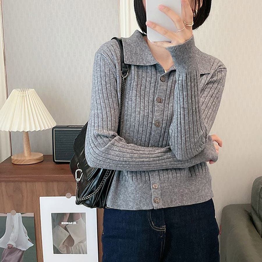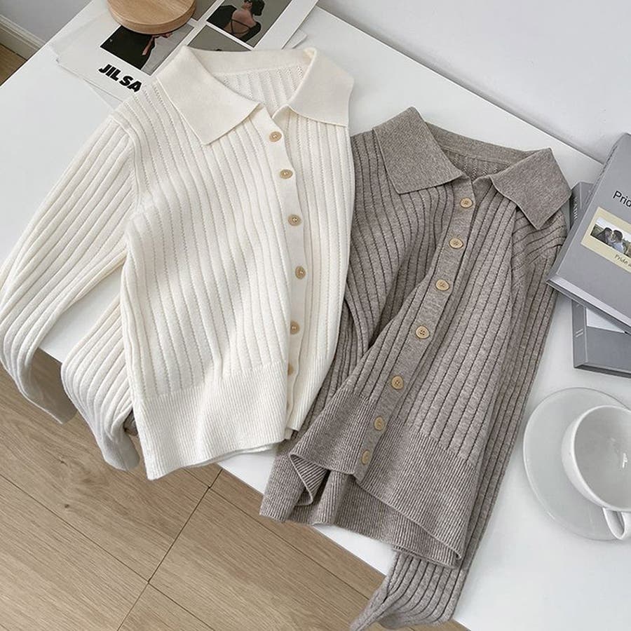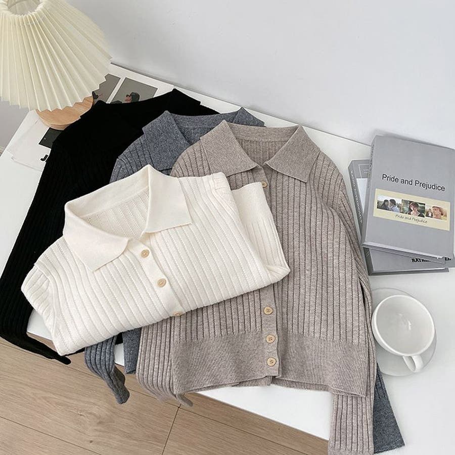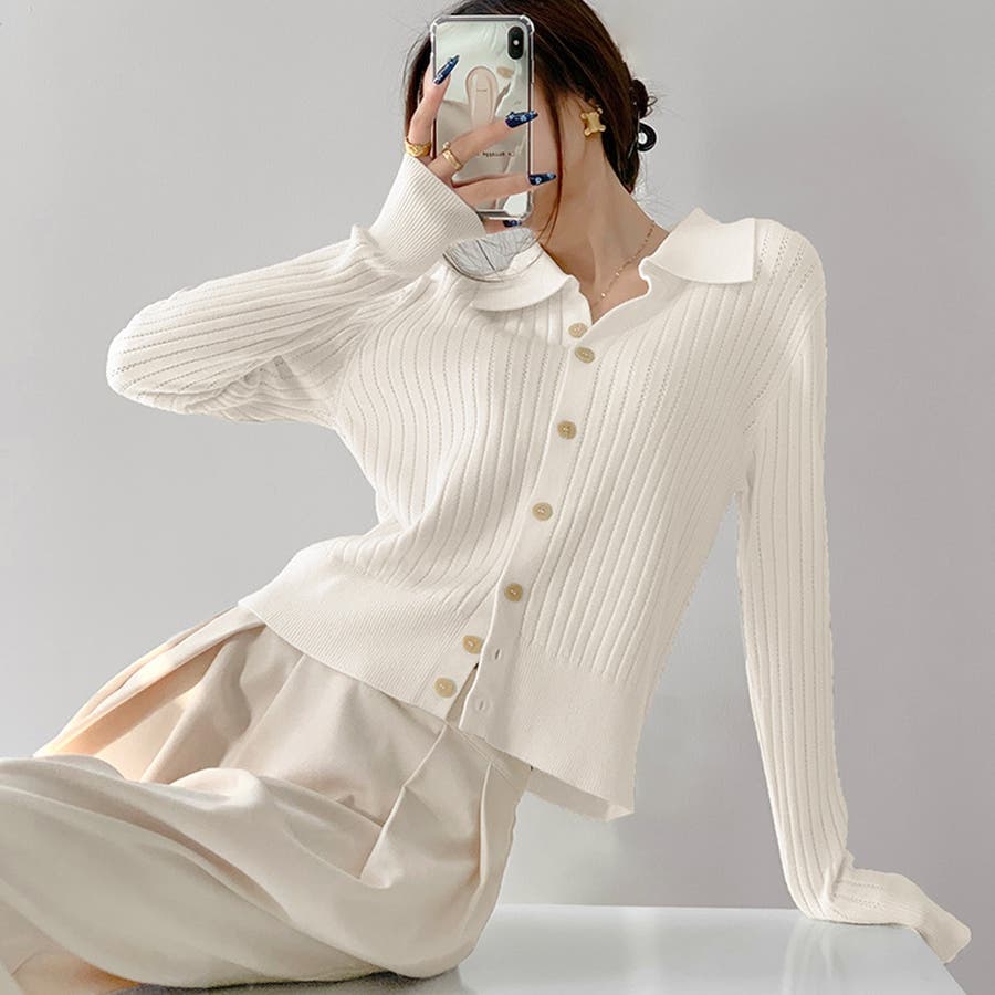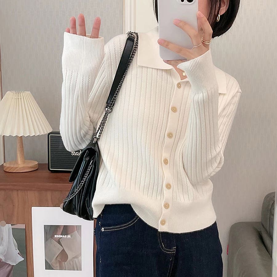 ポロカラー ニット カーディガン