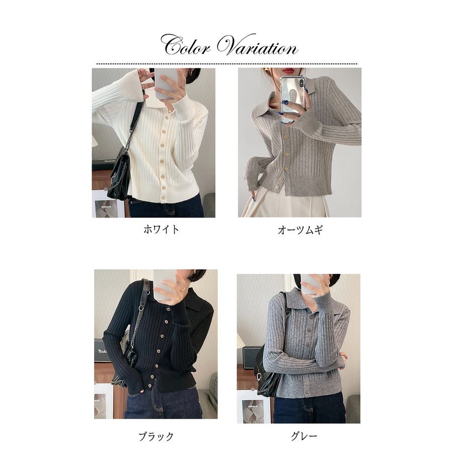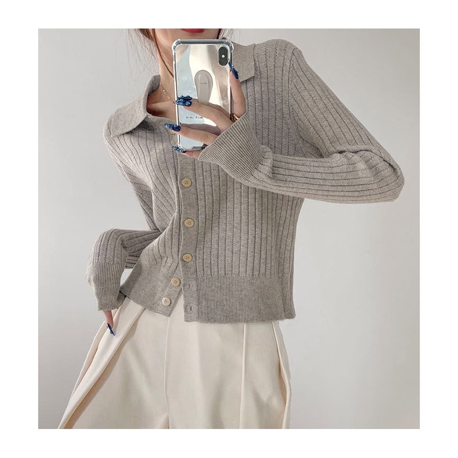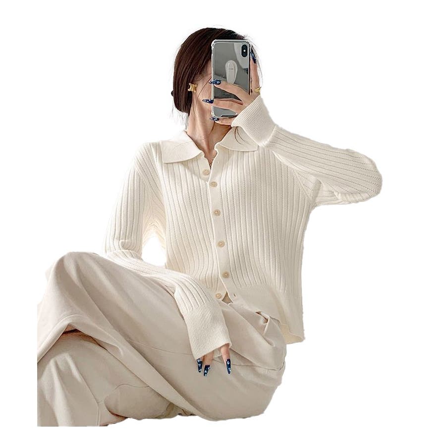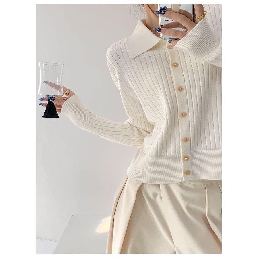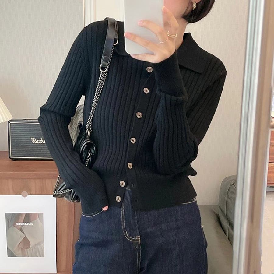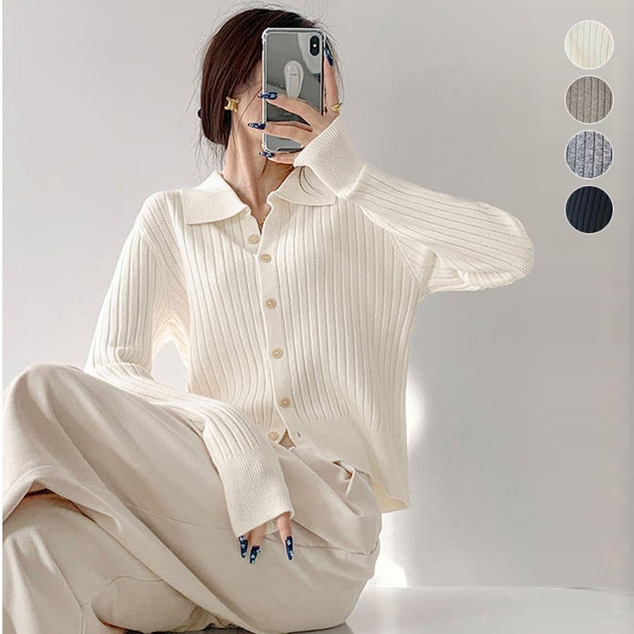 ポロカラー ニット カーディガン