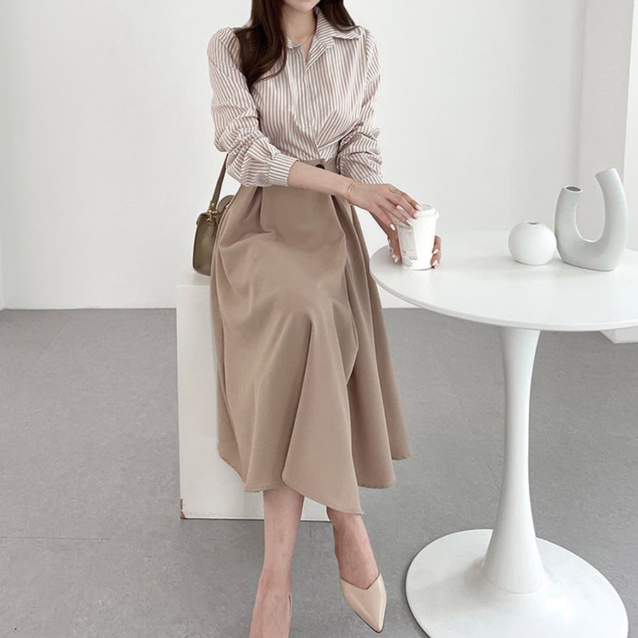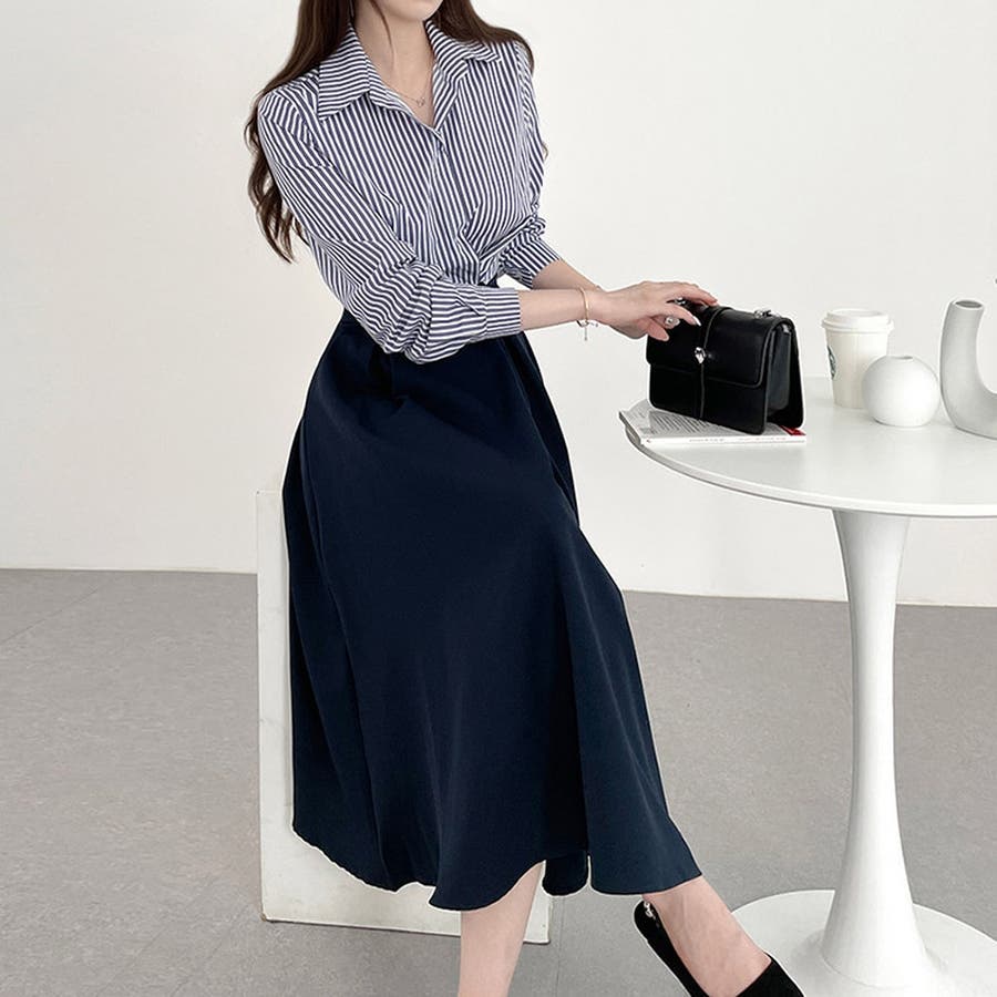 シャツワンピース 長袖 ロング レディース 秋 切り替え