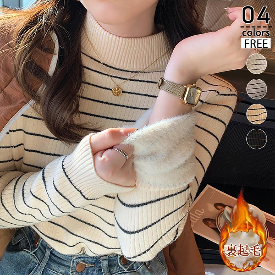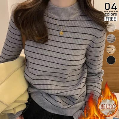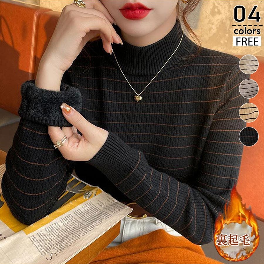 裏起毛 ハイネック リブニット