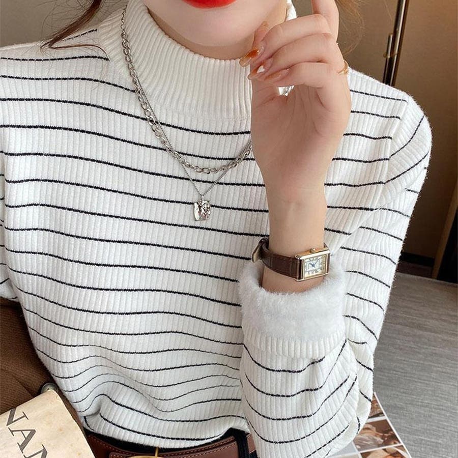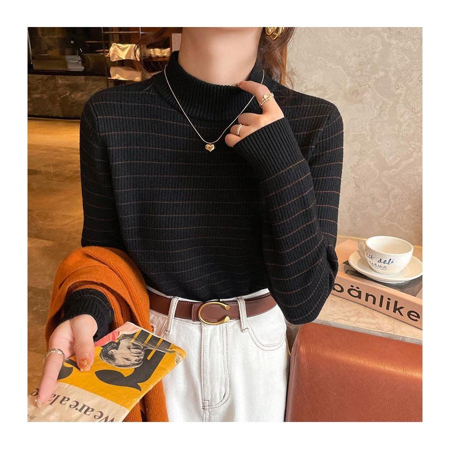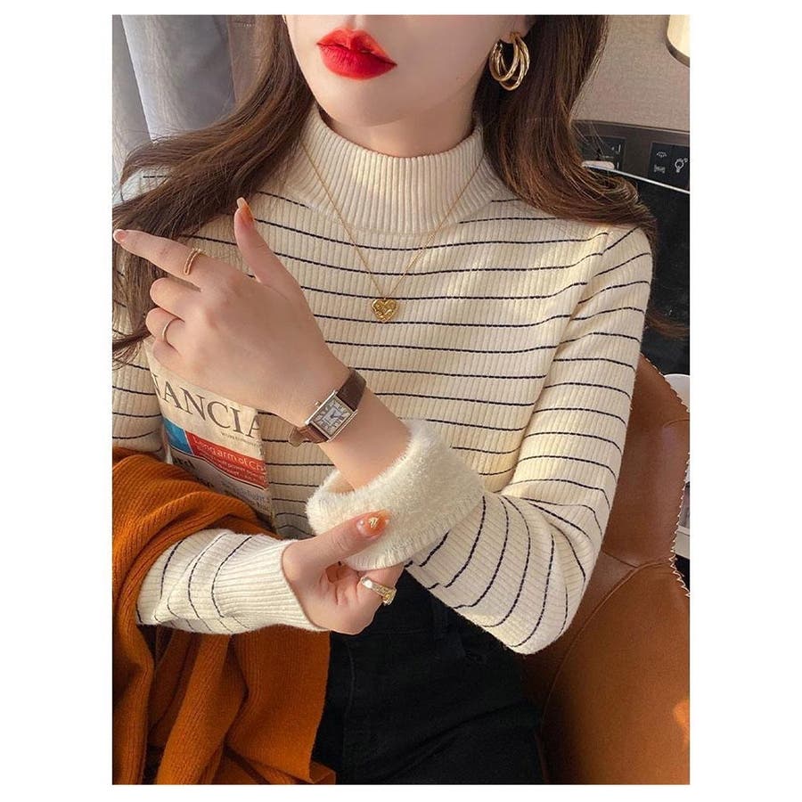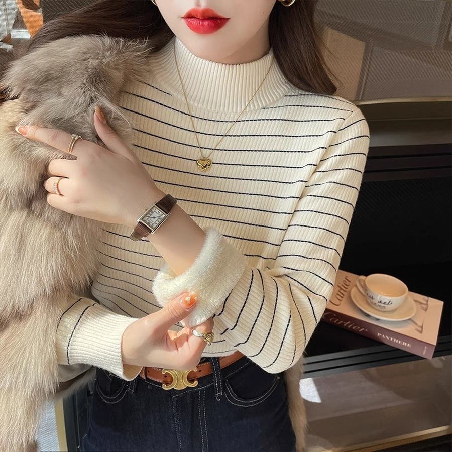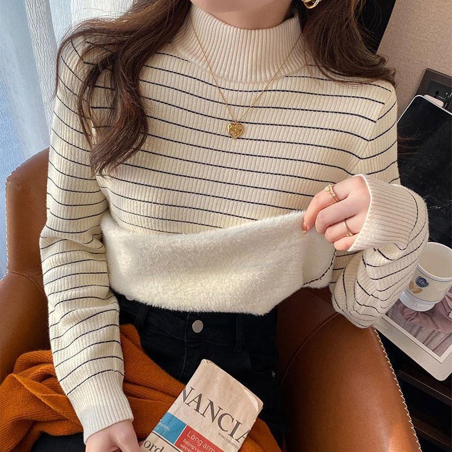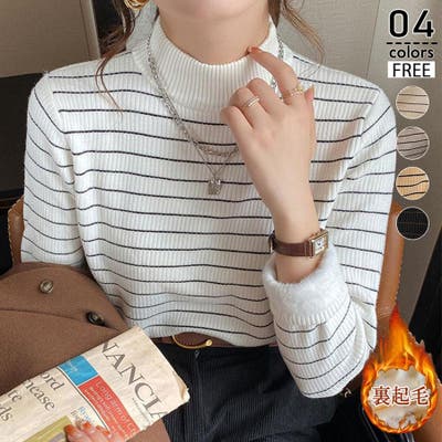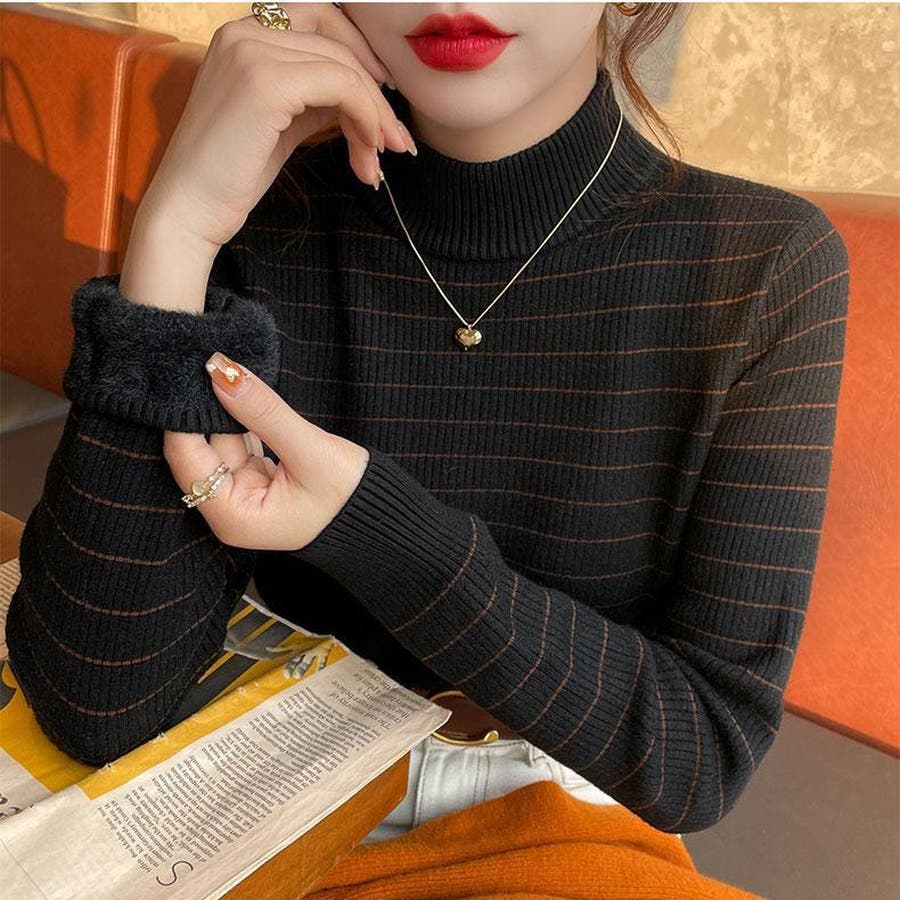 やわらかく伸縮性のあるリブ編み素材に、裏起毛仕様でしっかり暖かいハイネックニットトップス。