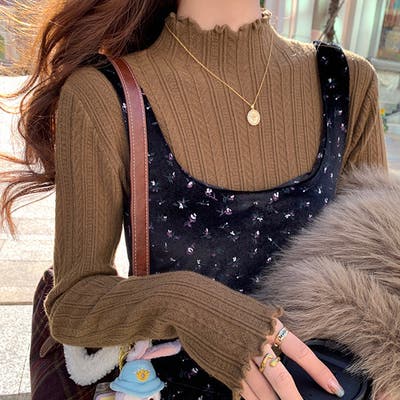 柔らかな肌触りと優しい色合いが魅力のリブ編みニットトップス。 上品なハイネックデザインで、首元までしっかり暖かく♪