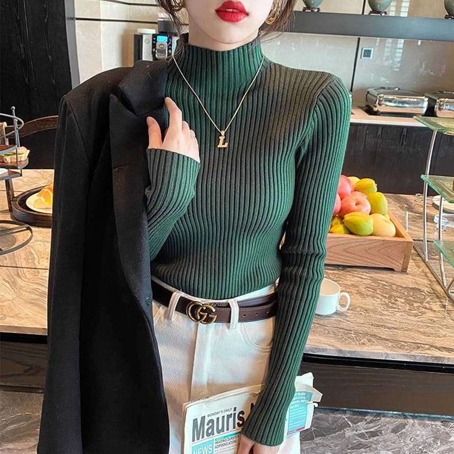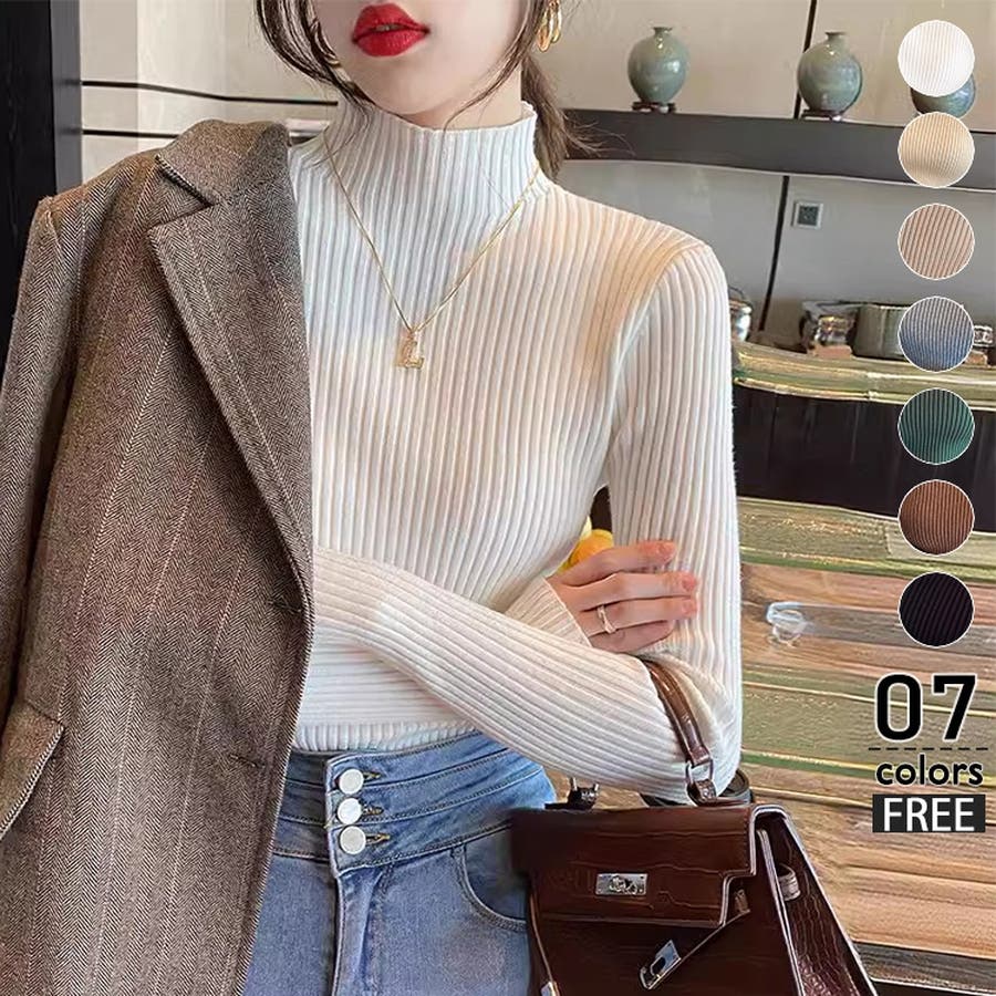 ジャケットやコートのインナーとしても映えるシンプルデザインで、秋冬のデイリーコーデに欠かせない一枚です。