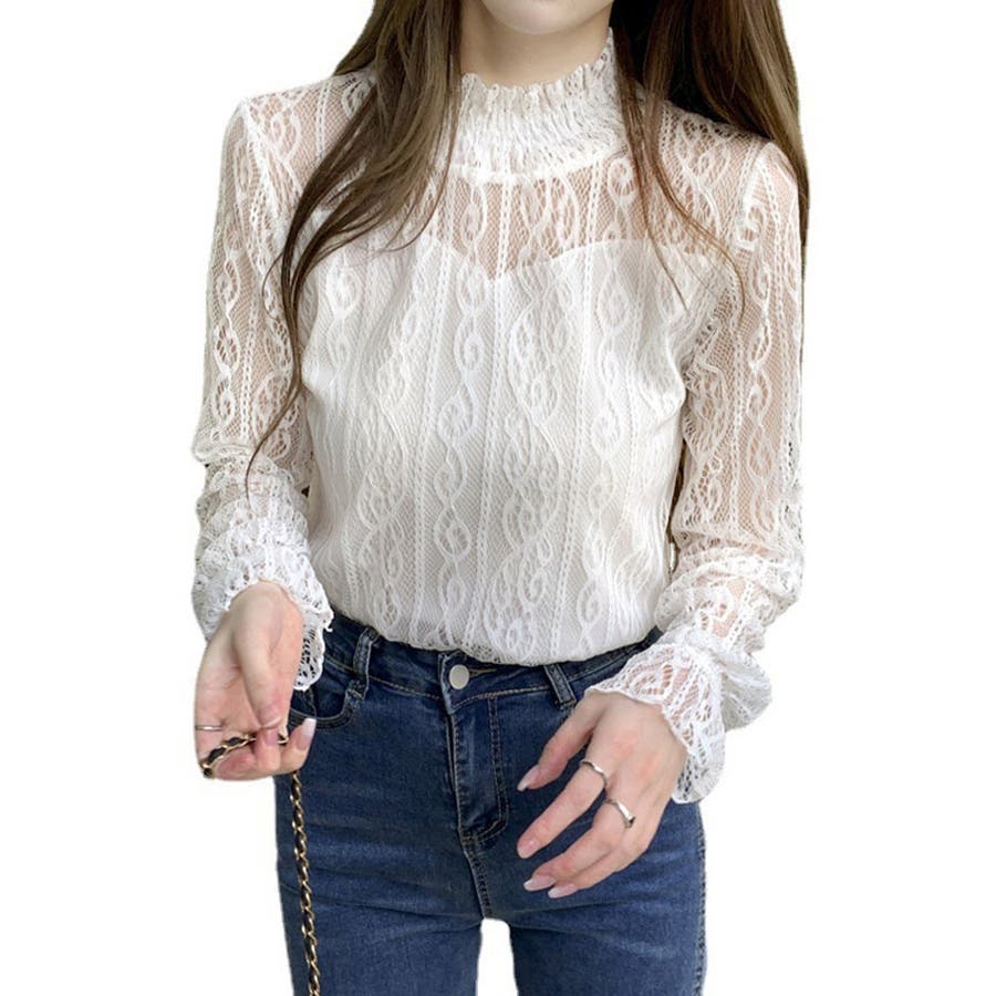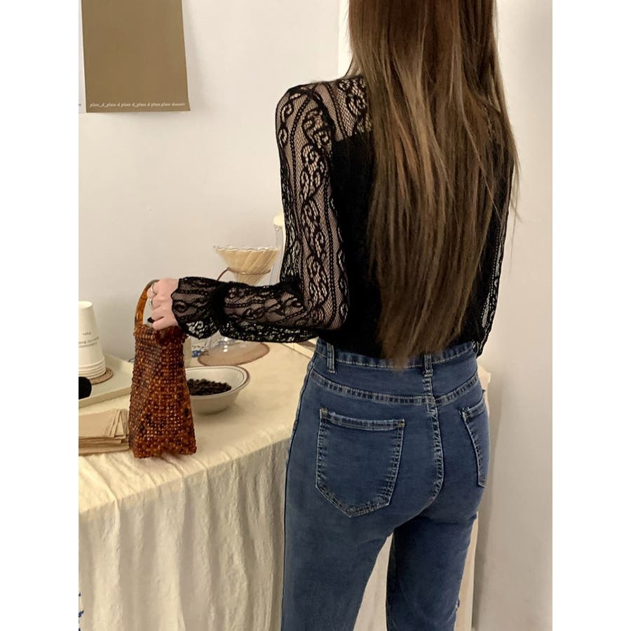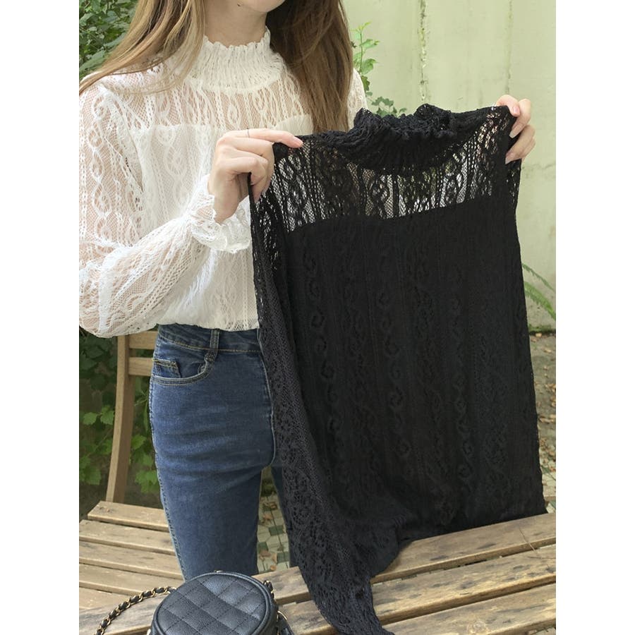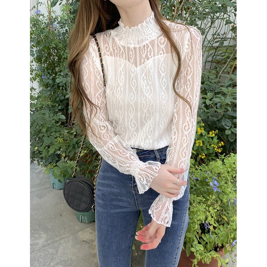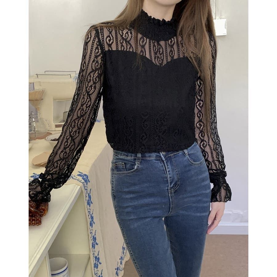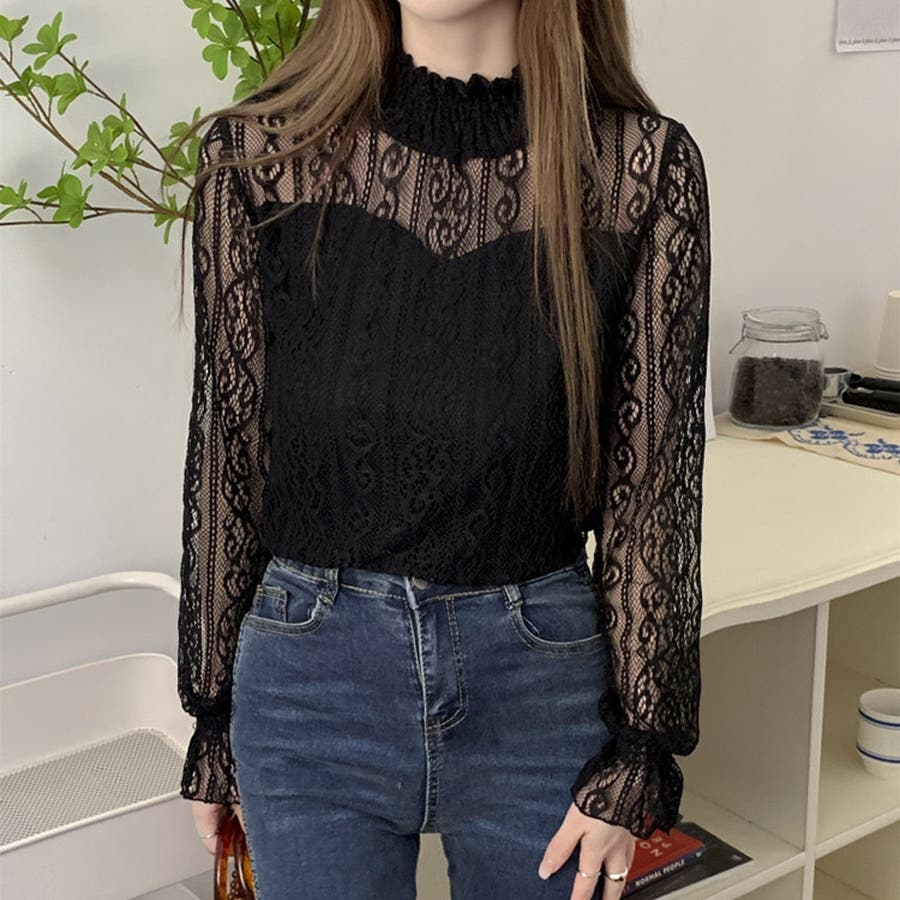 このレーストップスは、上品な透け感が魅力のデザインで、春から秋にかけての季節にぴったりです。