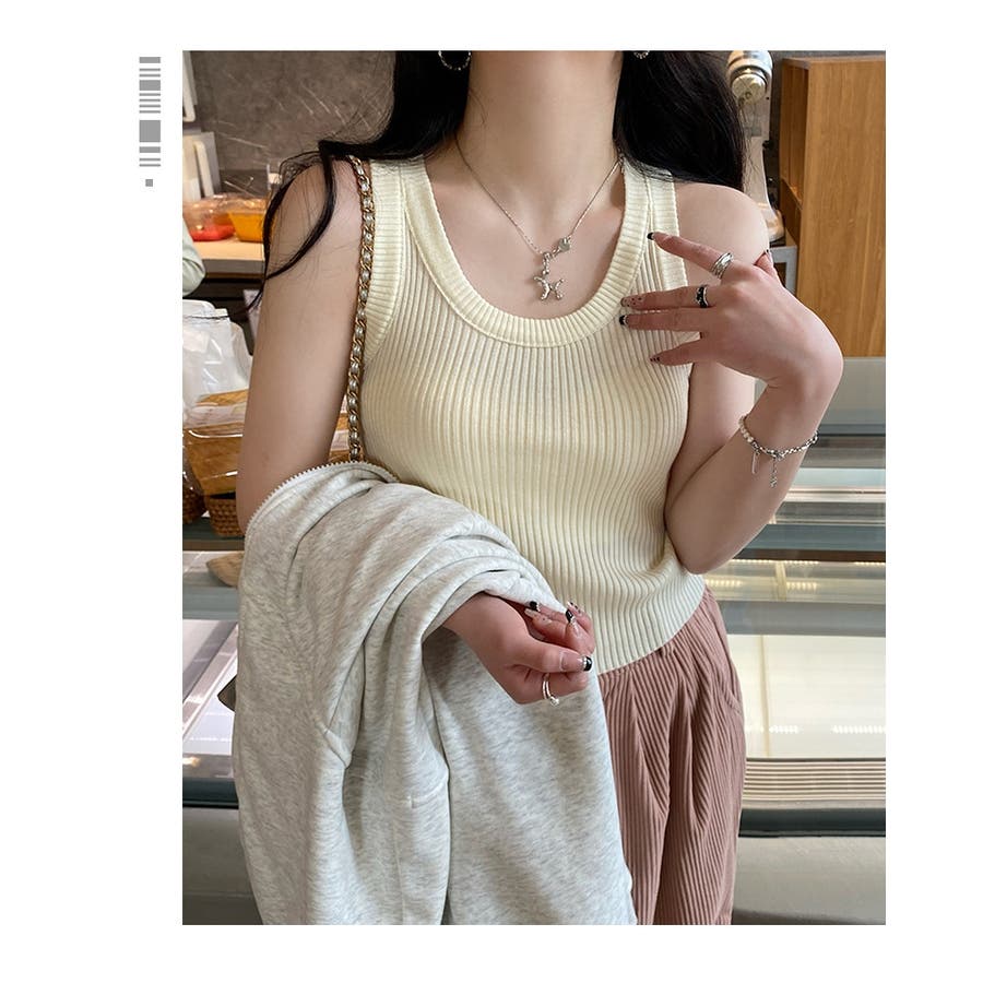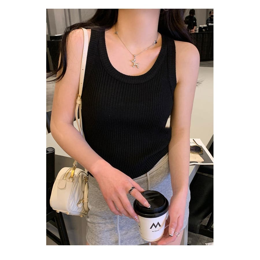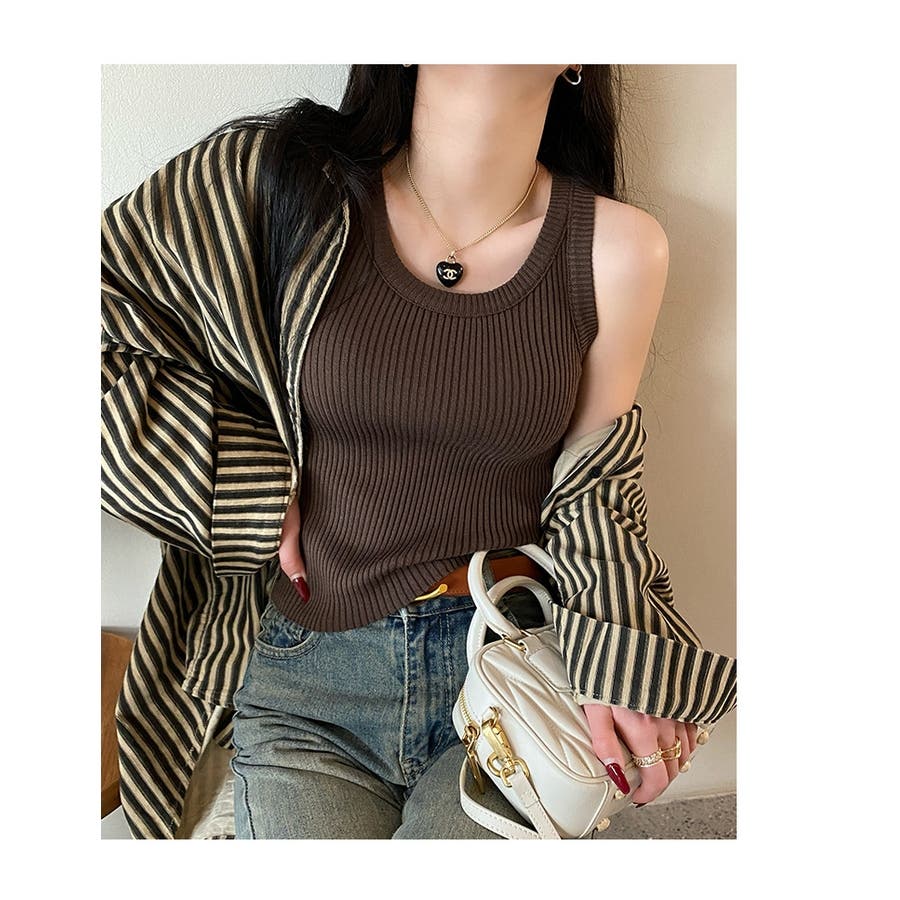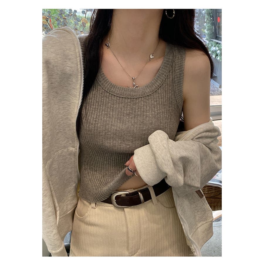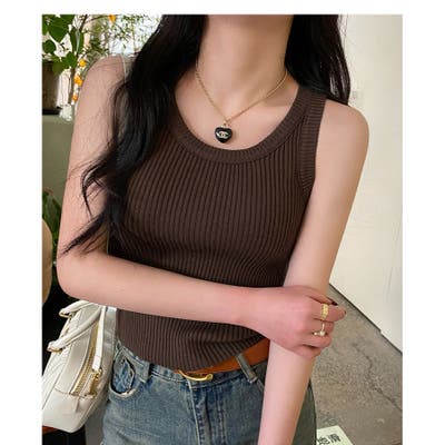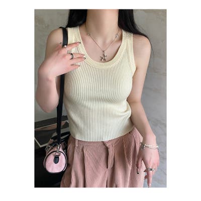 シンプルながらも着回し力抜群のニットタンクトップ。