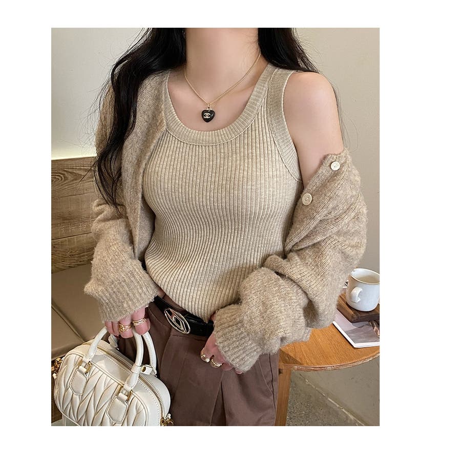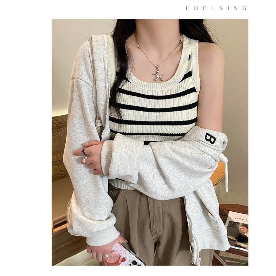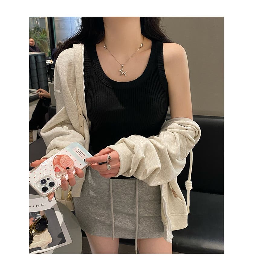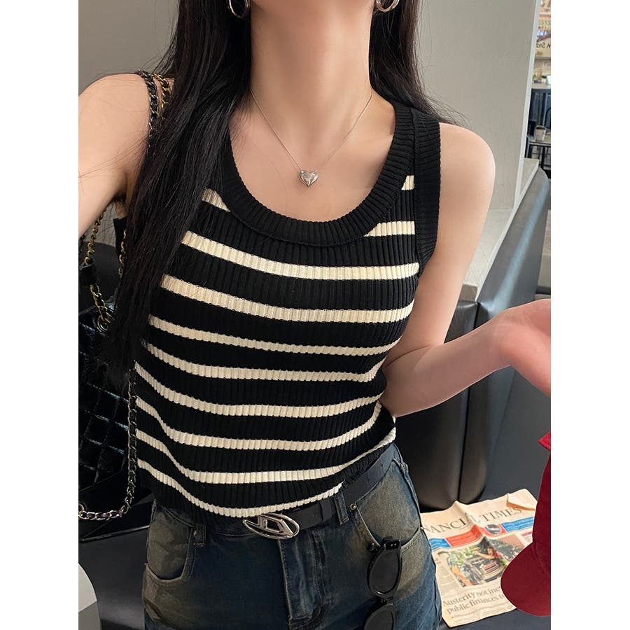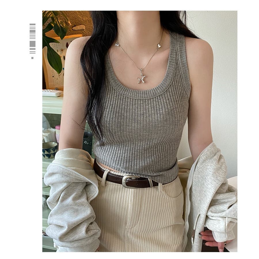 シンプルながらも着回し力抜群のニットタンクトップ。