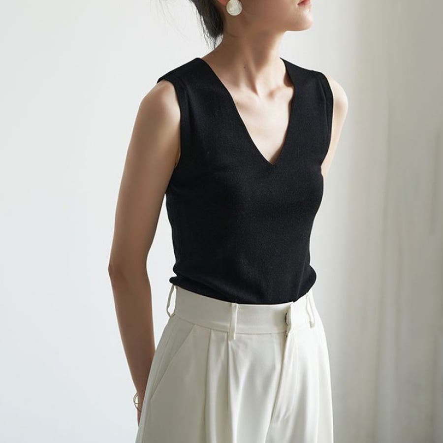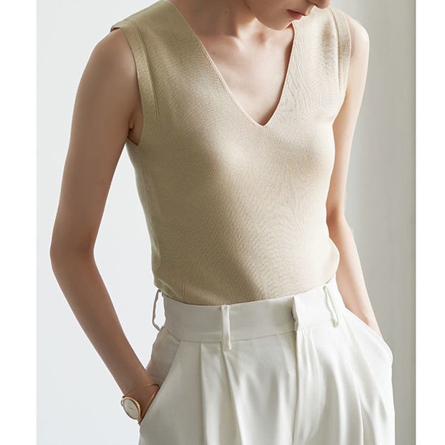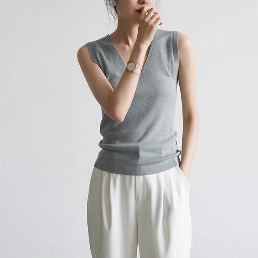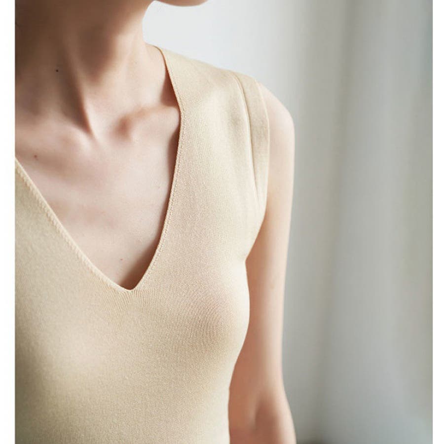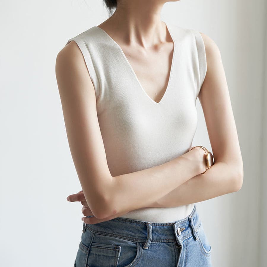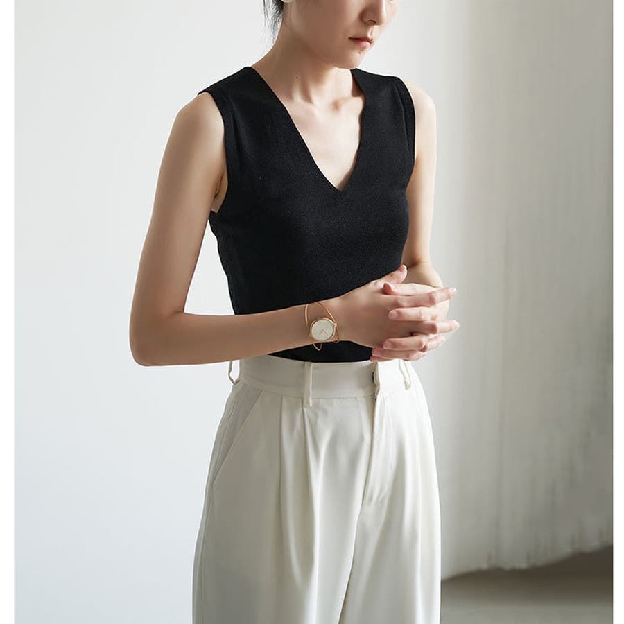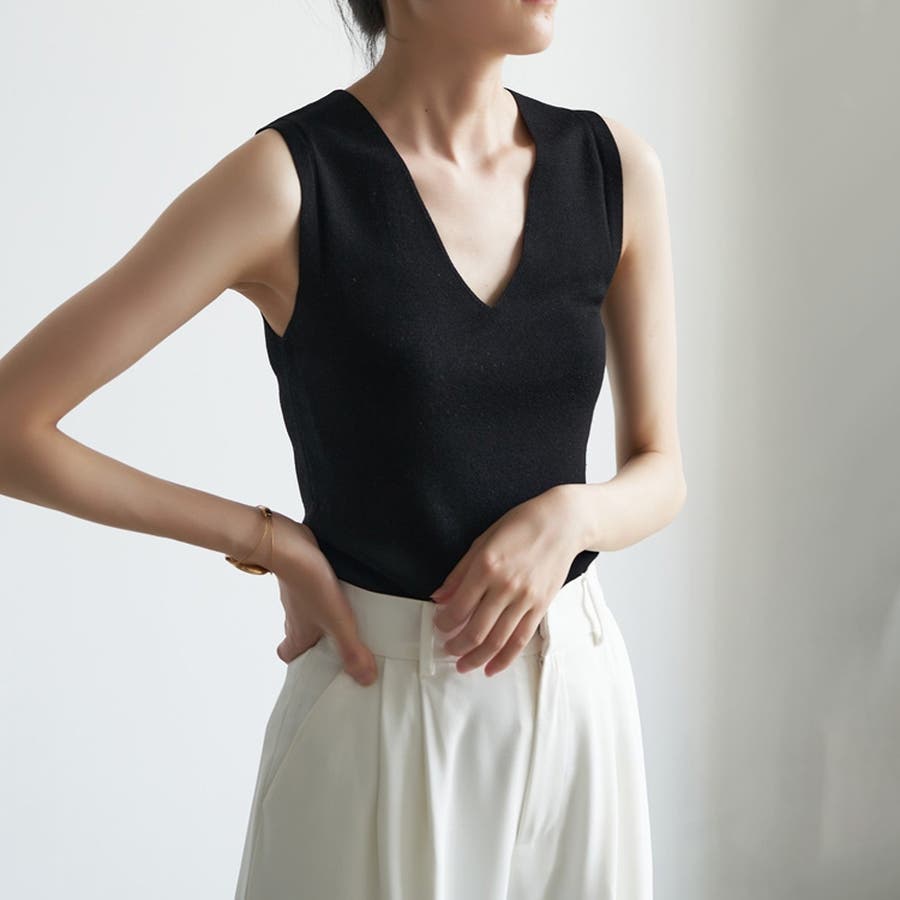 ノースリーブ仕様で、ジャケットのインナーとしてはもちろん、一枚でもサマになる着回し力の高いアイテム。