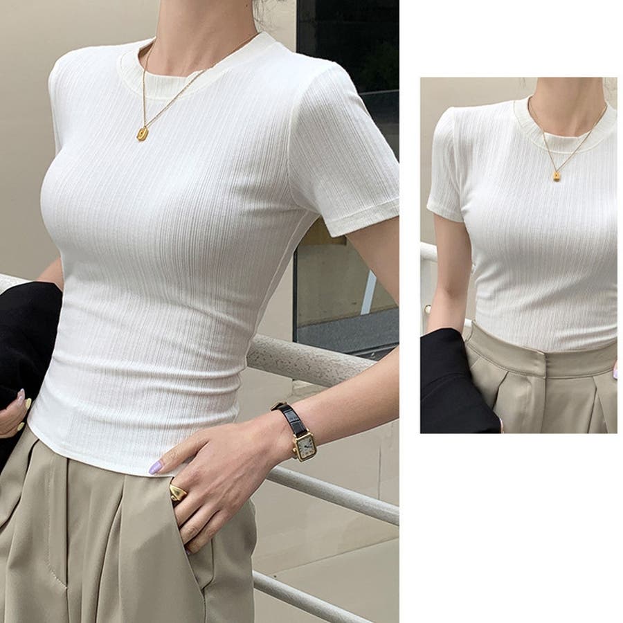 柔らかい素材感が心地よく、長時間の着用でも快適さを保ちます。さらに、フィット感のあるシルエットが女性らしさを引き立て、さりげないおしゃれを演出します。