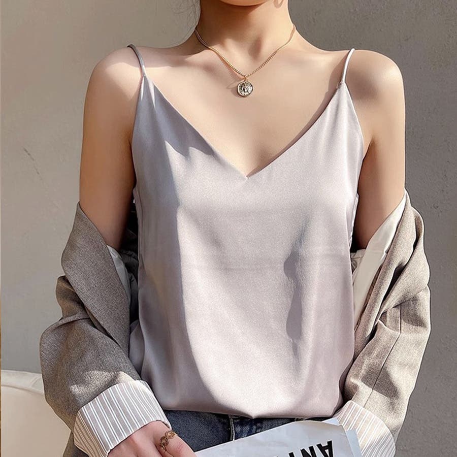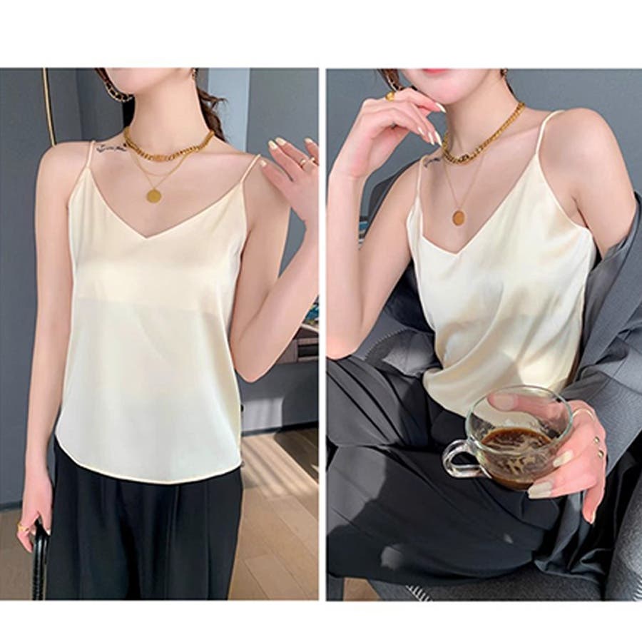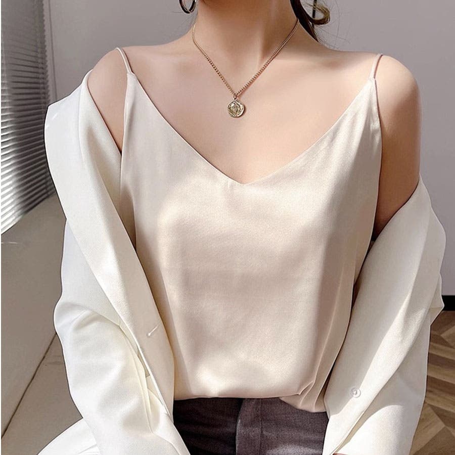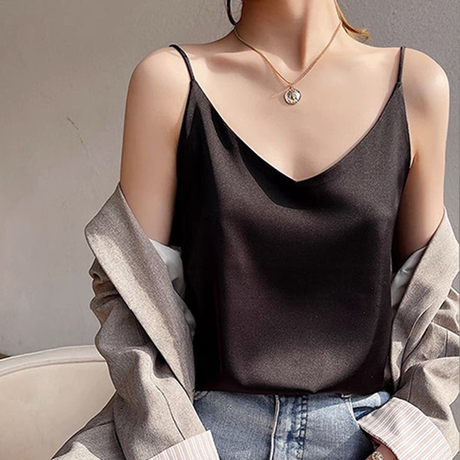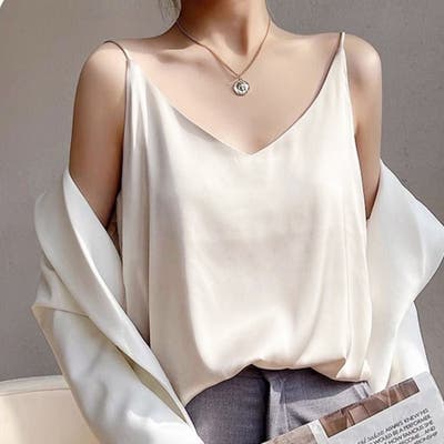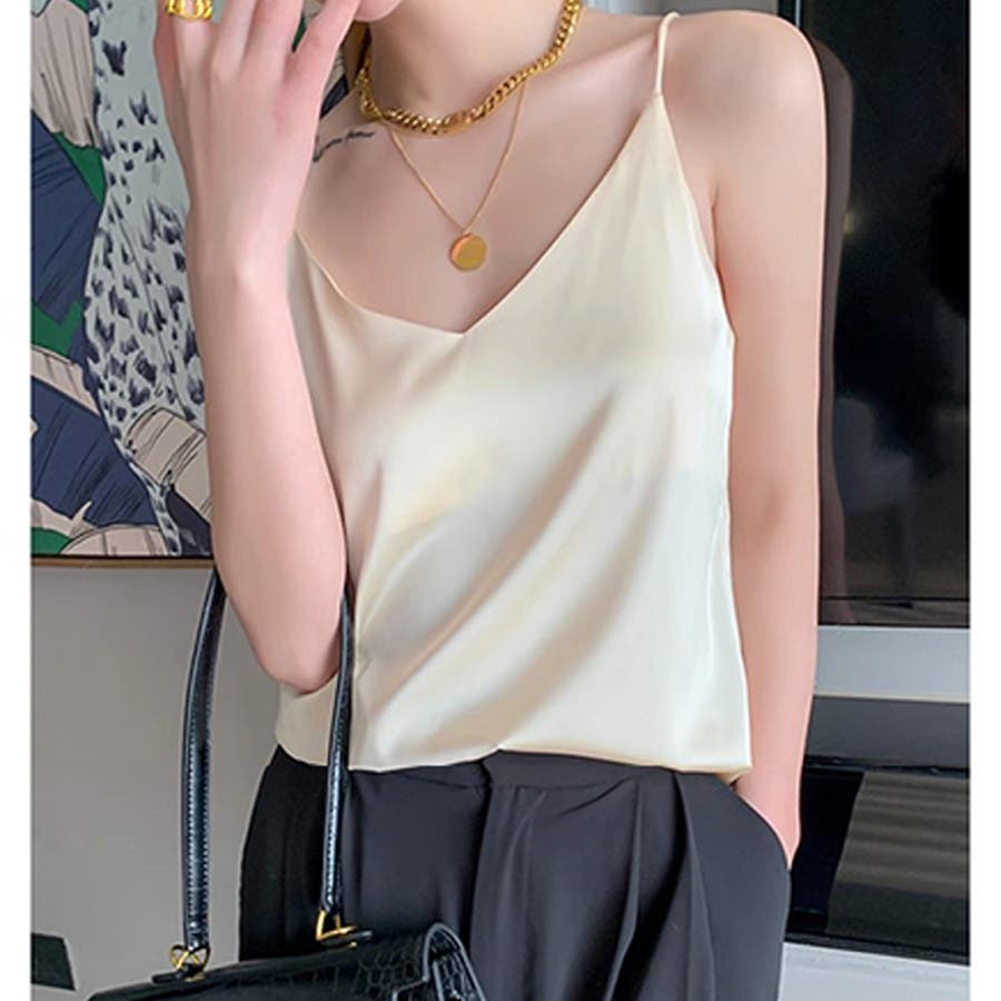 滑らかな肌触りで、素肌にやさしいシルクキャミソール。