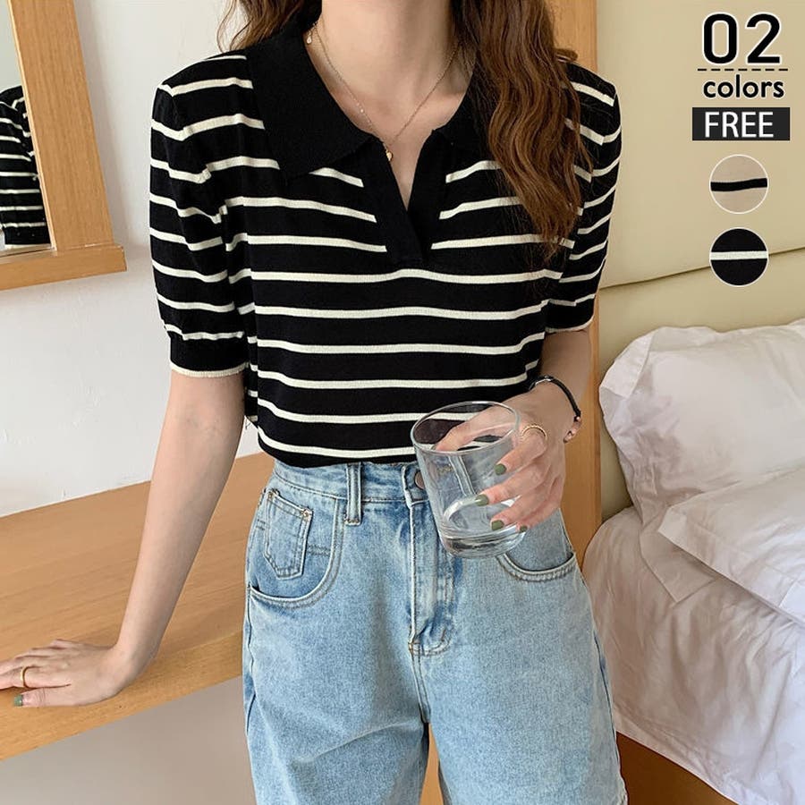 ポロ襟×Vネックデザインで、カジュアルながらもきちんと感を演出しつつ、小顔効果も◎