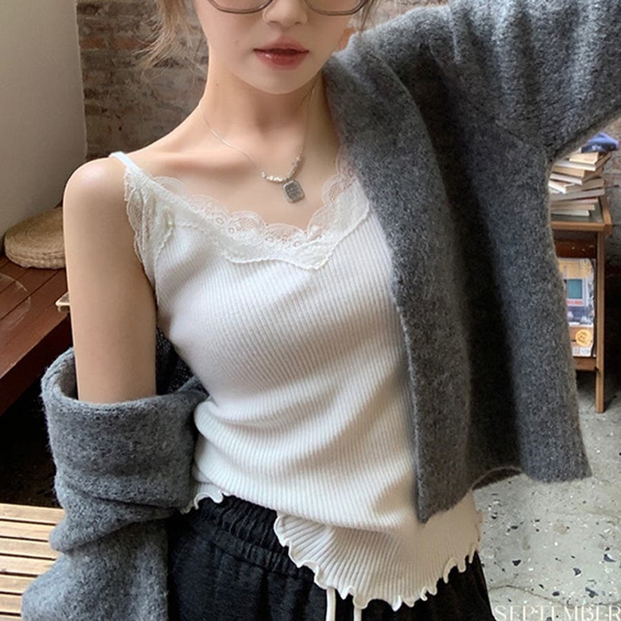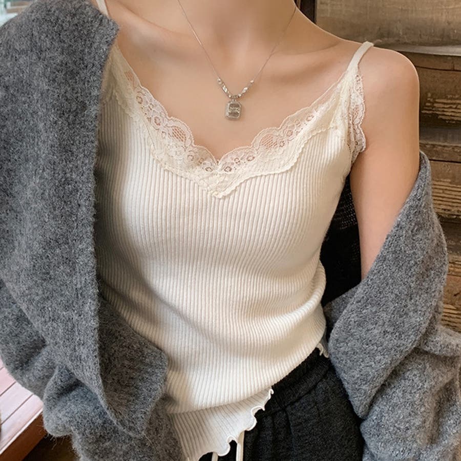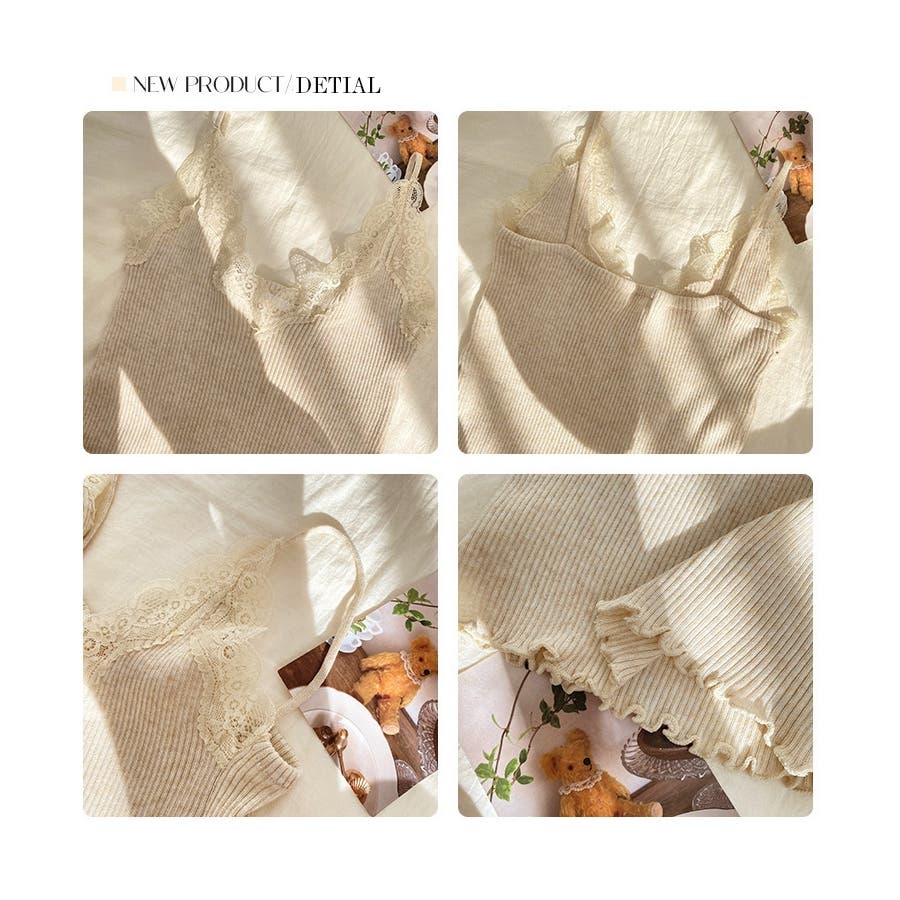繊細なレースデザインとリブ素材で、上品さと可愛らしさを両立しました。