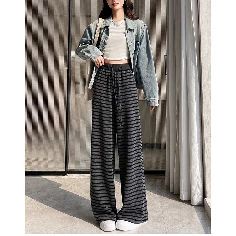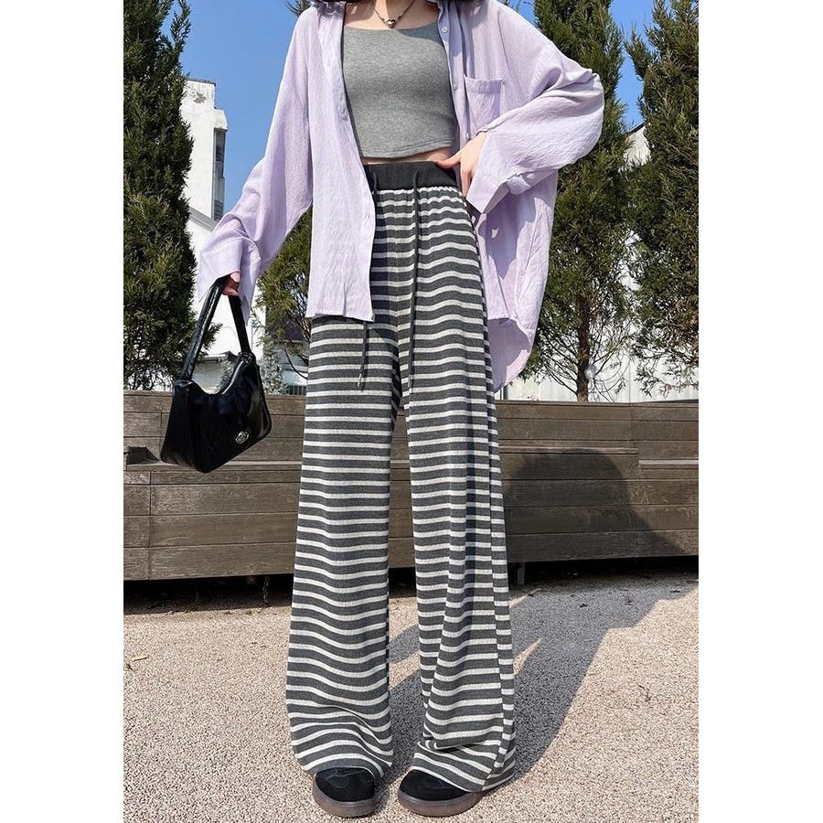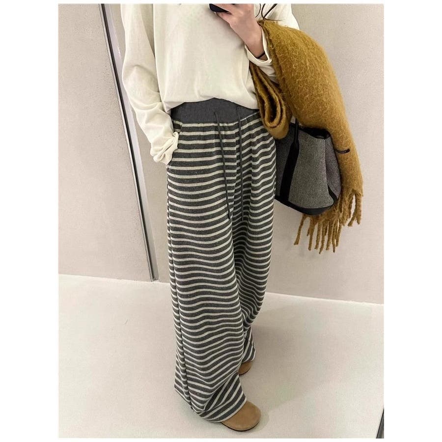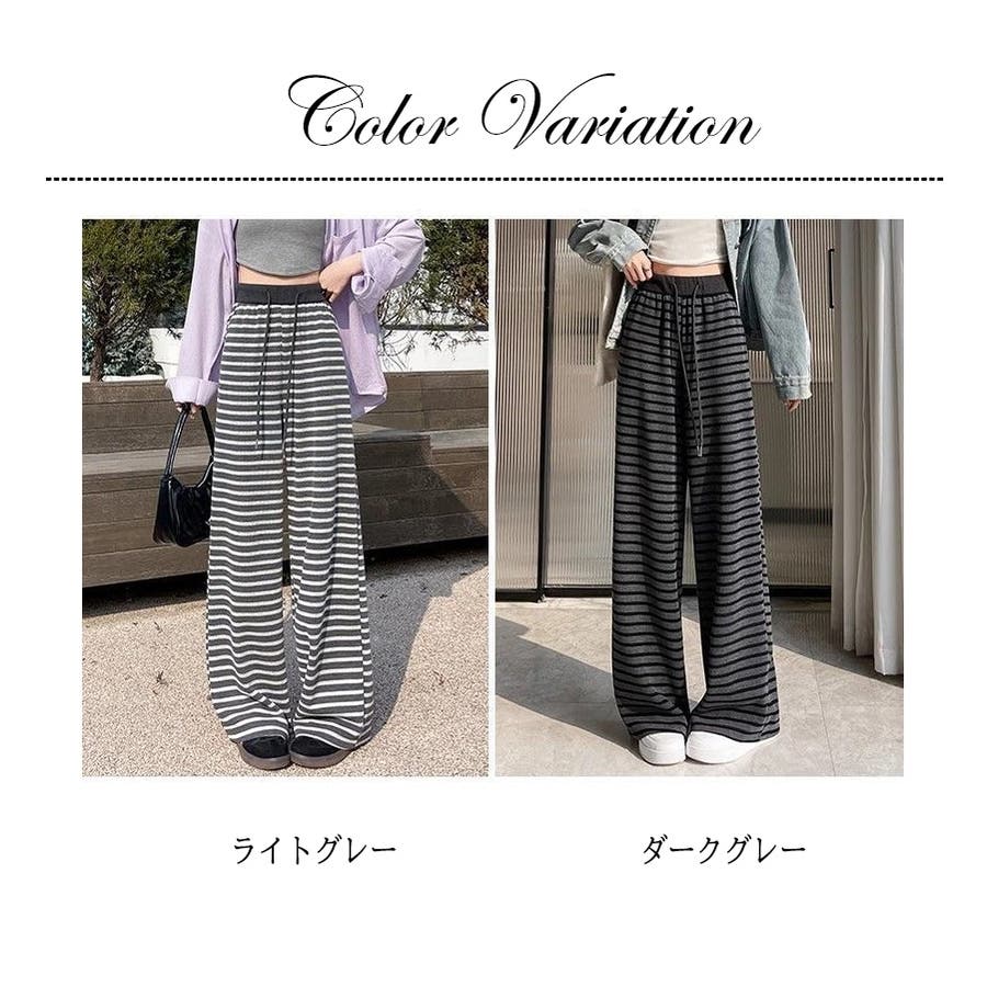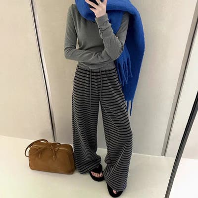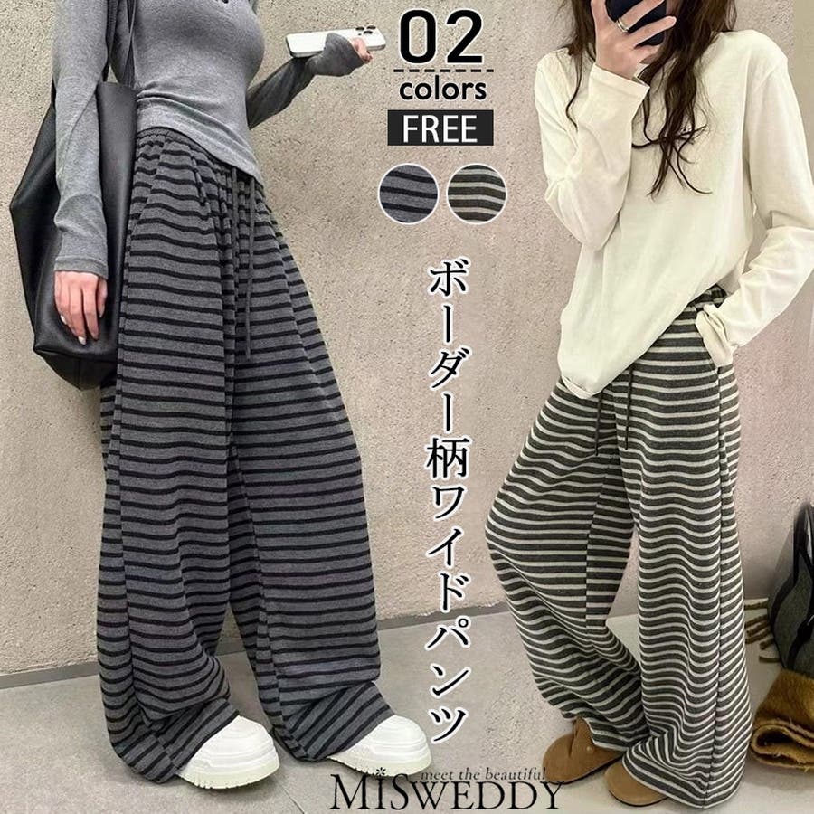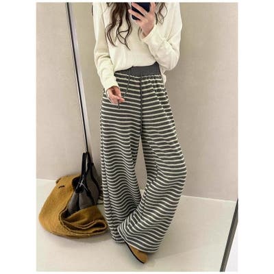 ゆるっとしたシルエットが可愛い、ボーダー柄のワイドパンツ。