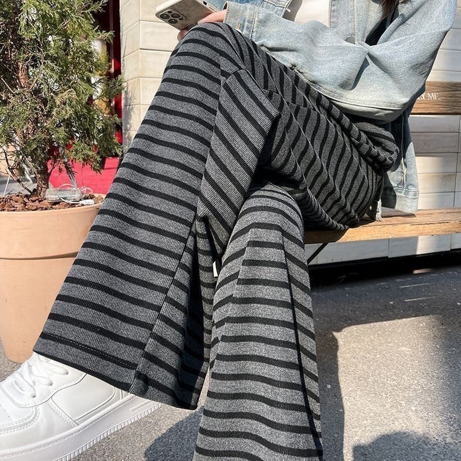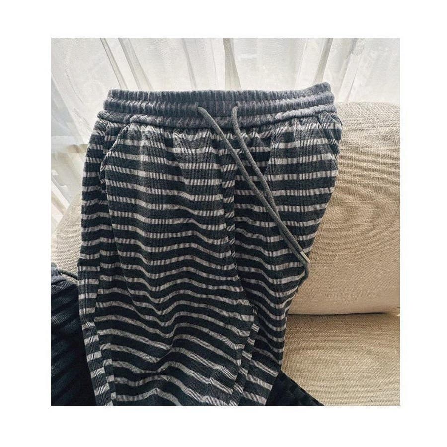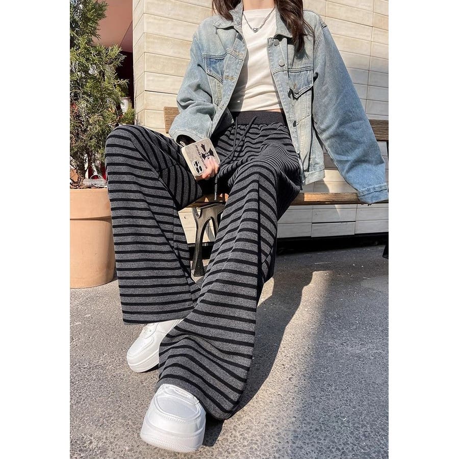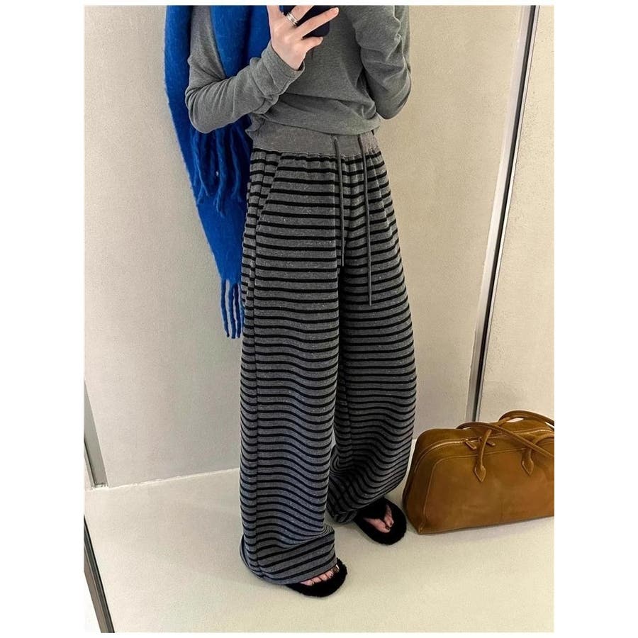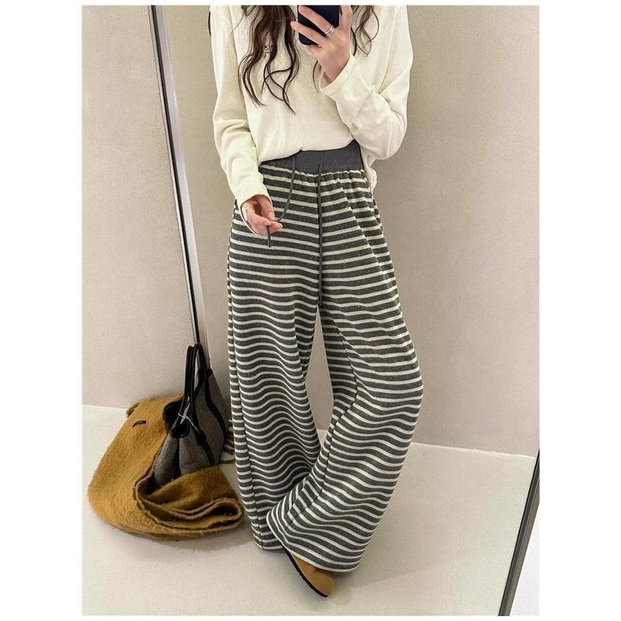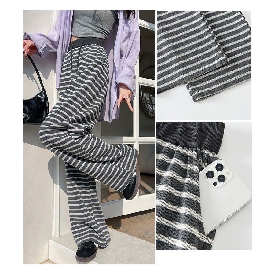 ゆるっとしたシルエットが可愛い、ボーダー柄のワイドパンツ。