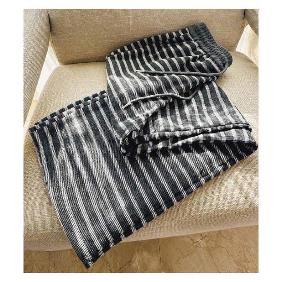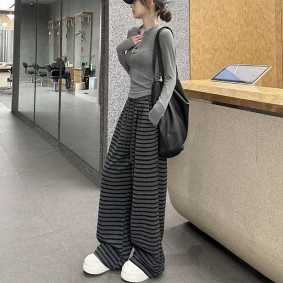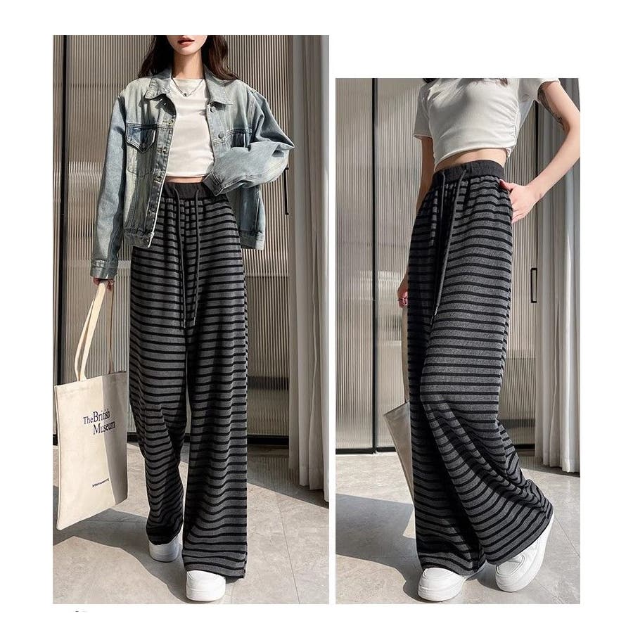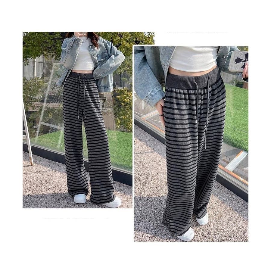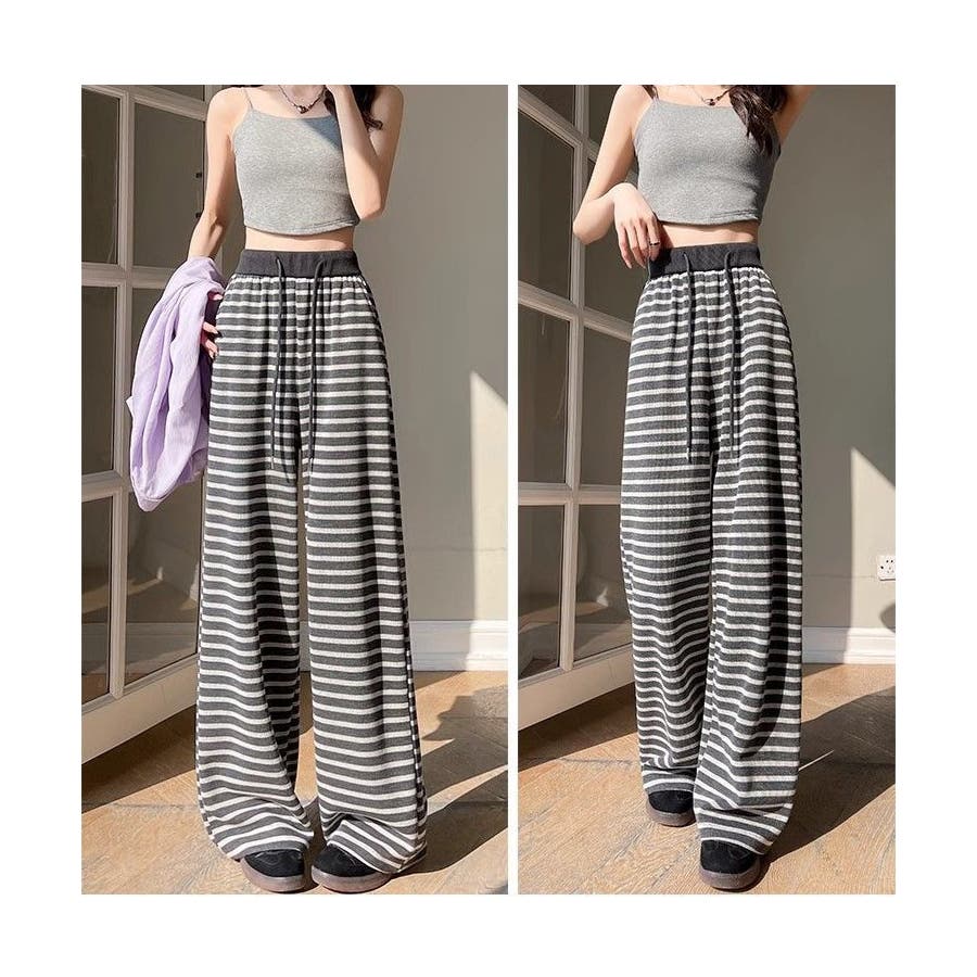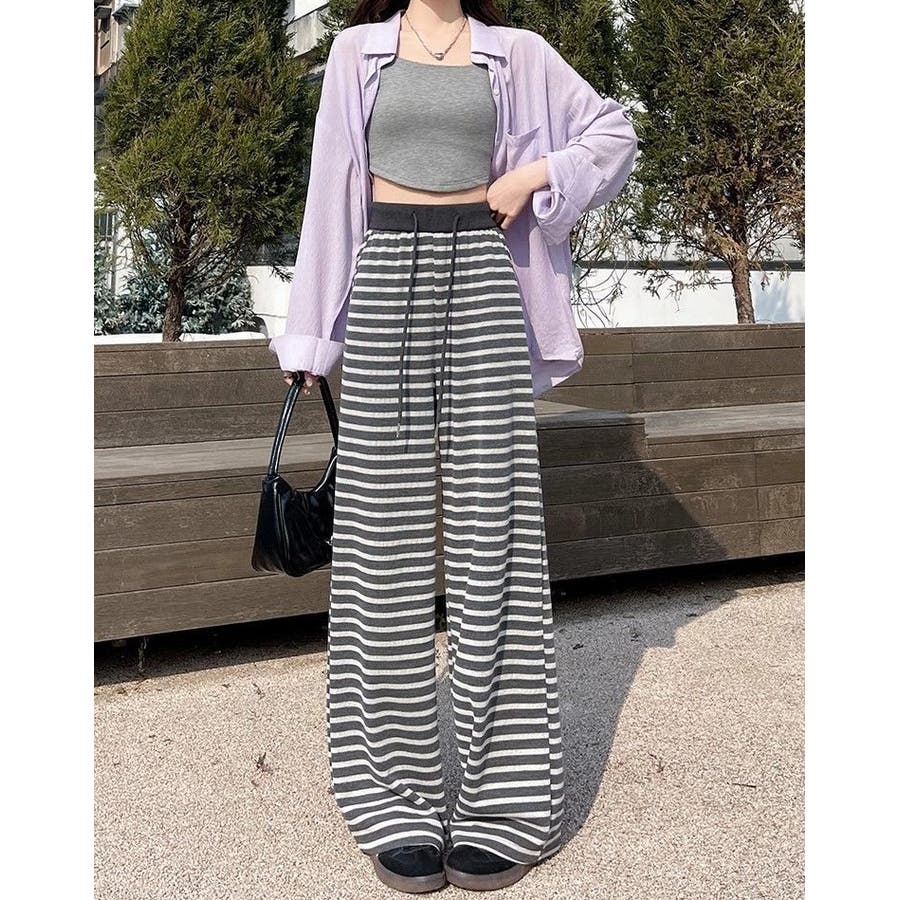 ゆるっとしたシルエットが可愛い、ボーダー柄のワイドパンツ。