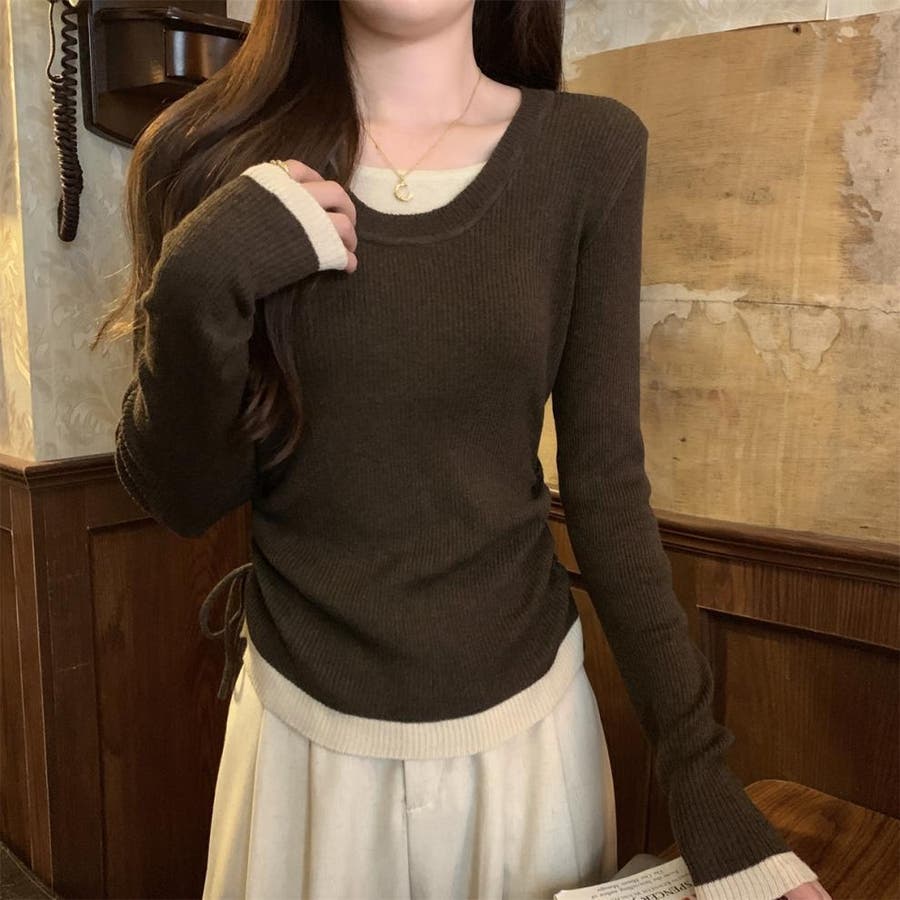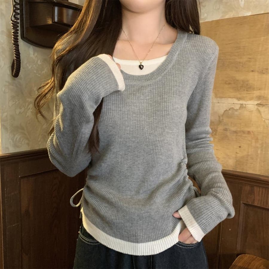 レイヤード リブニット サイドシャーリング