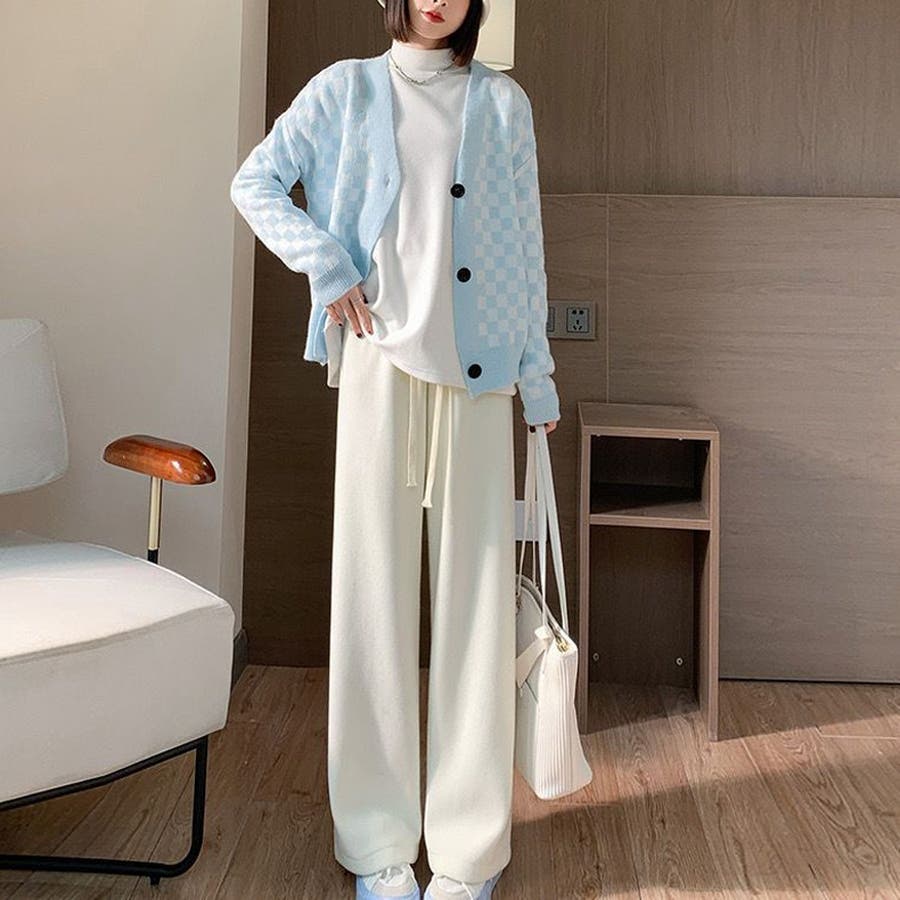 ストレートシルエットが脚をまっすぐ美しく見せ、体型カバーも◎。