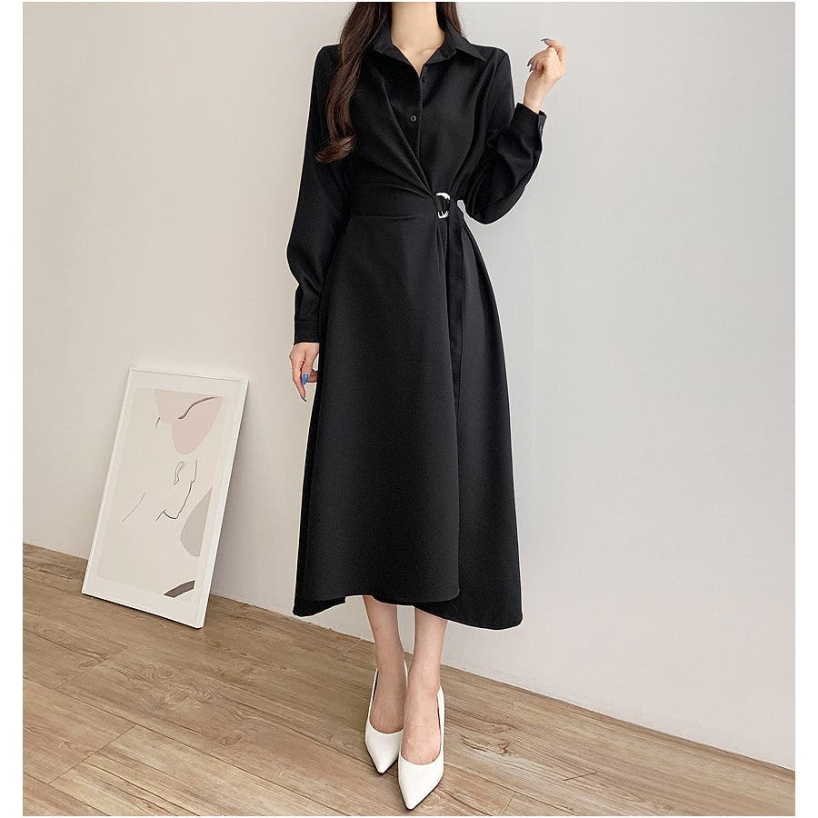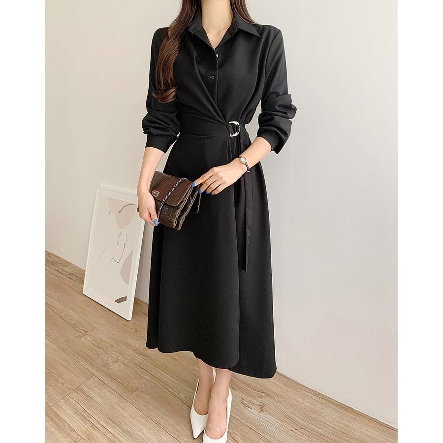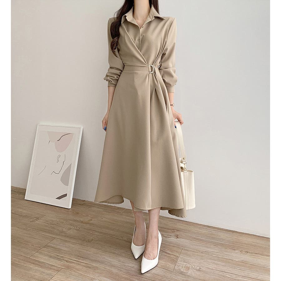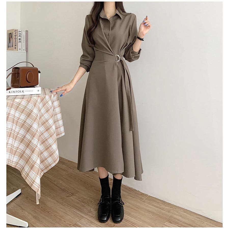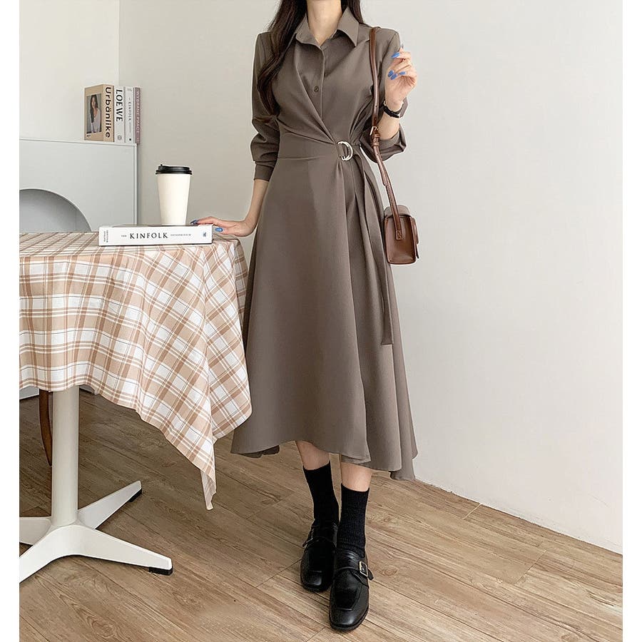 上品で洗練された印象を与える韓国風デザインのシャツワンピース。