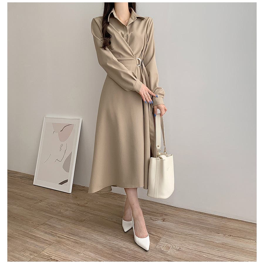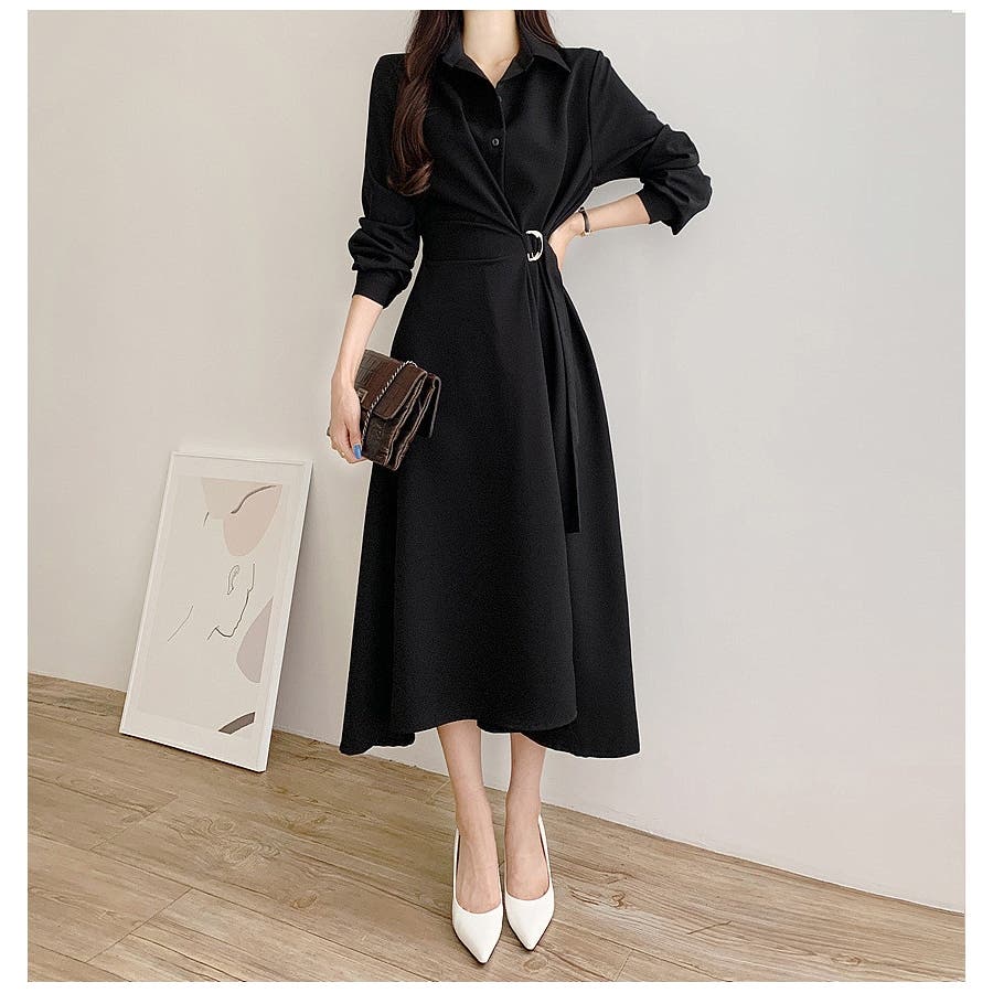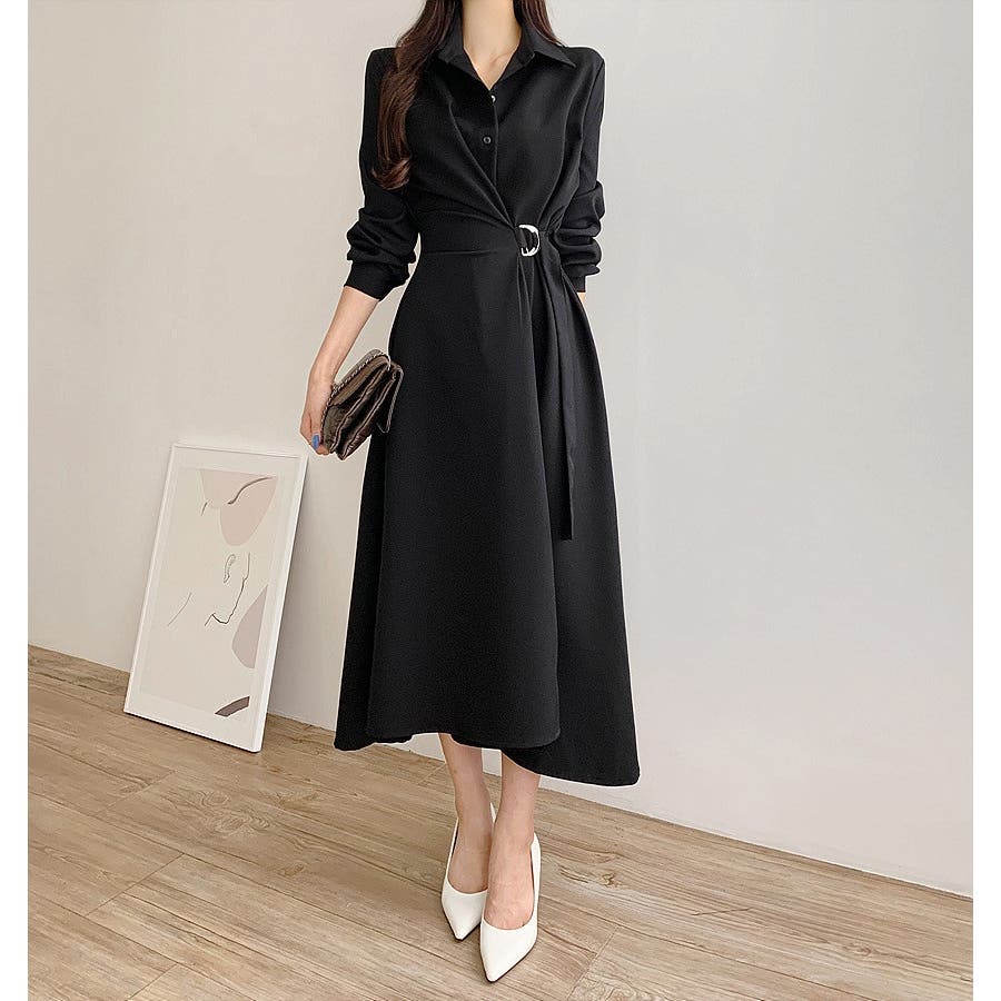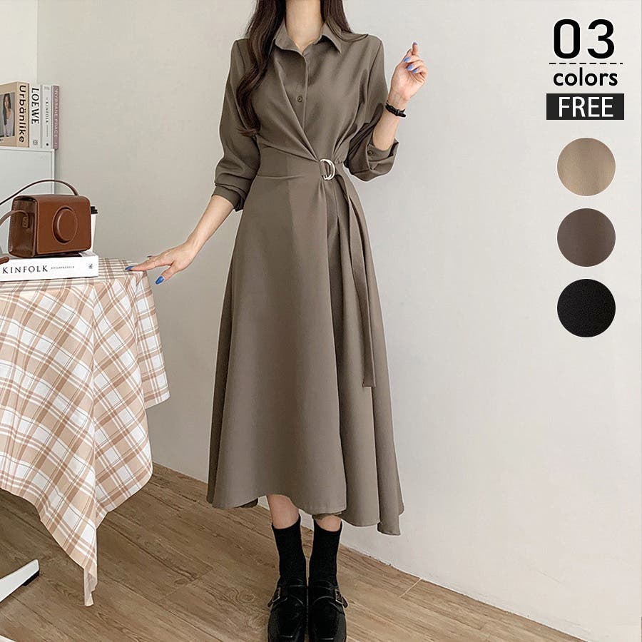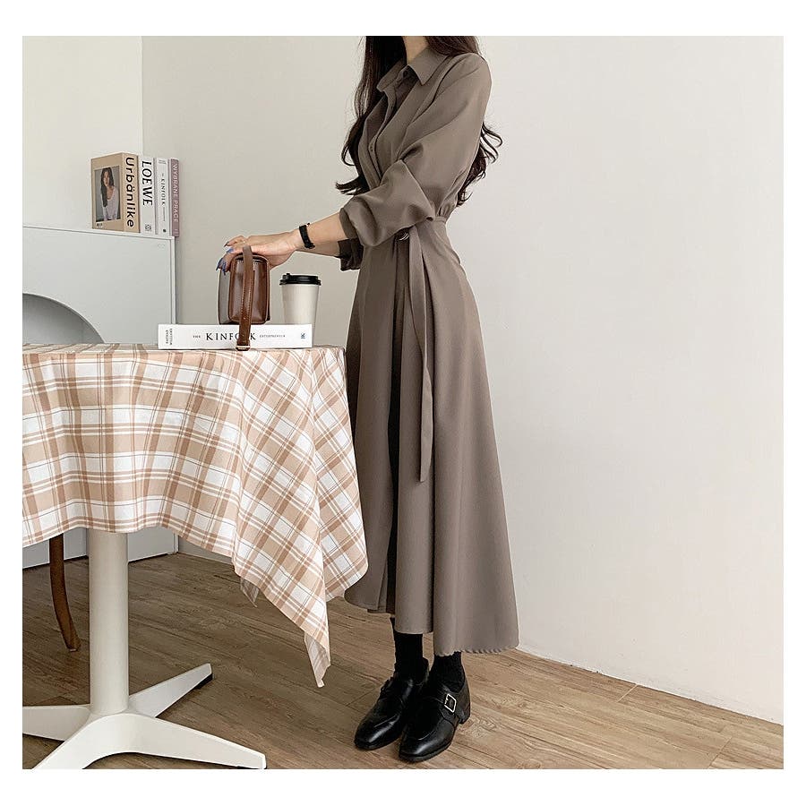 上品で洗練された印象を与える韓国風デザインのシャツワンピース。