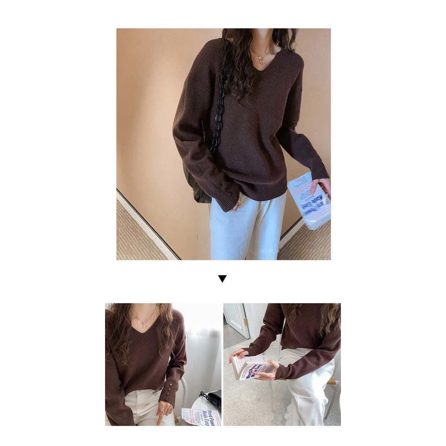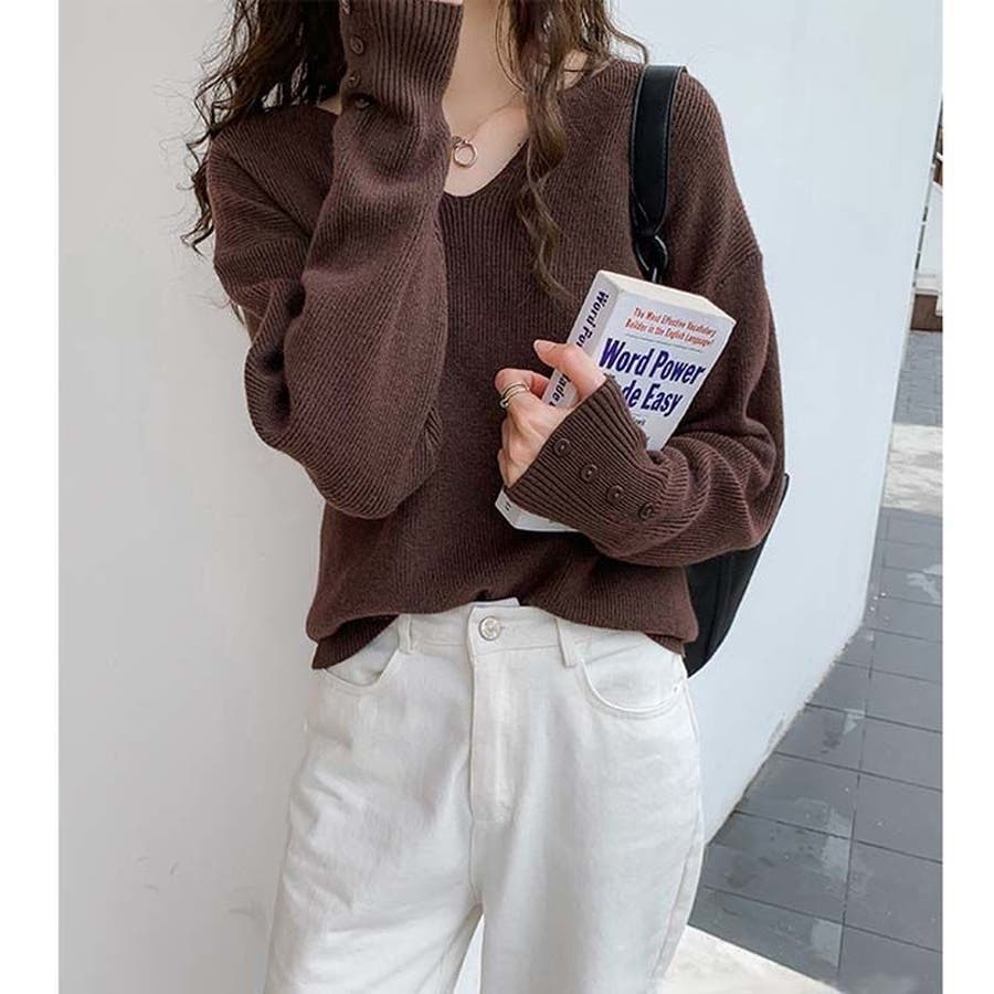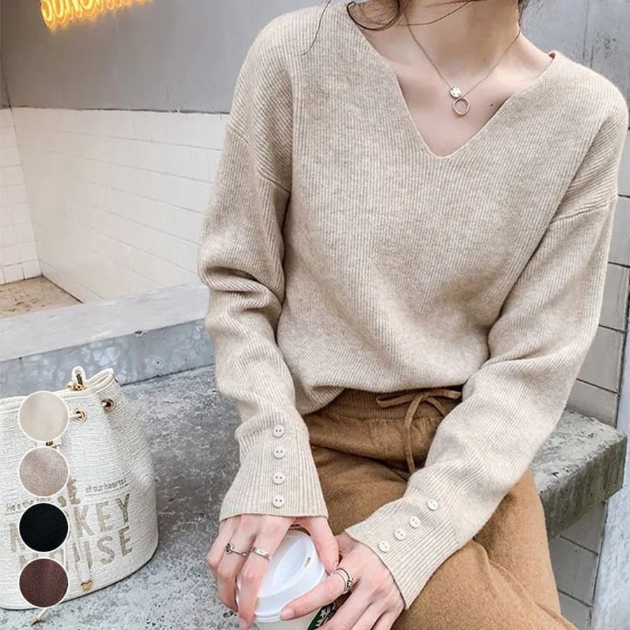ニット チュニック レディース 長袖 Vネック ゆったり カジュアル 秋冬