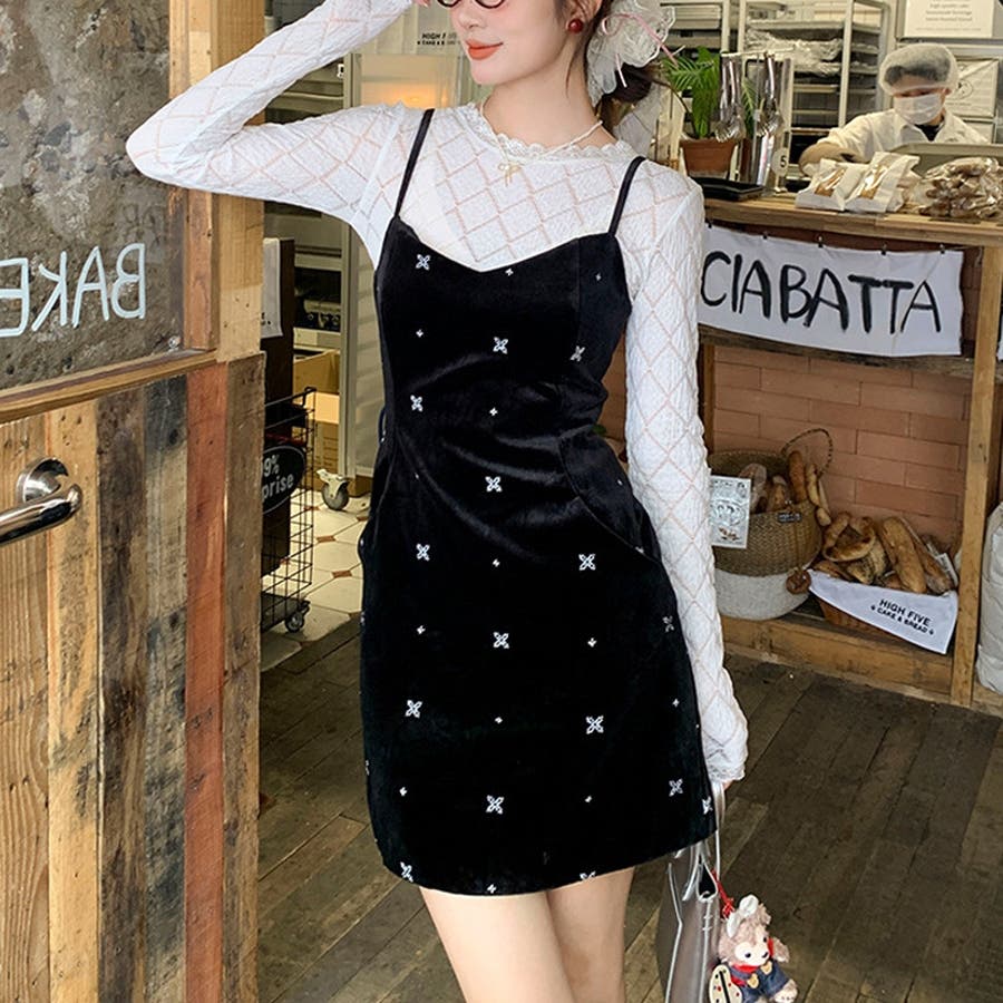 ワンピースやキャミワンピ、ビスチェなどと重ね着することで、トレンド感のあるレイヤードコーデが完成します。