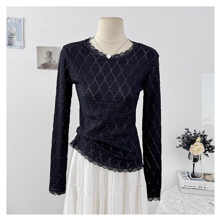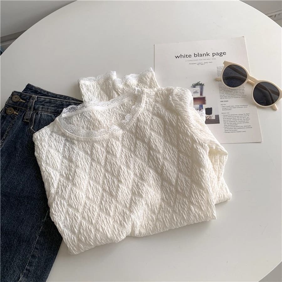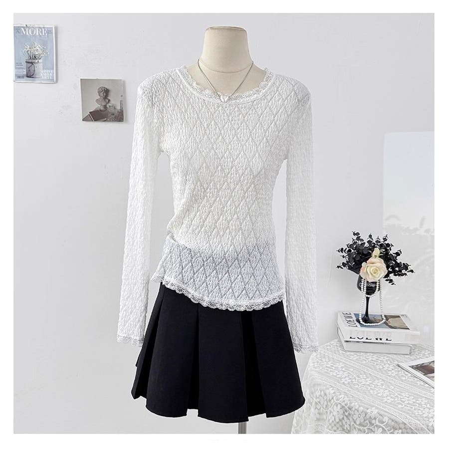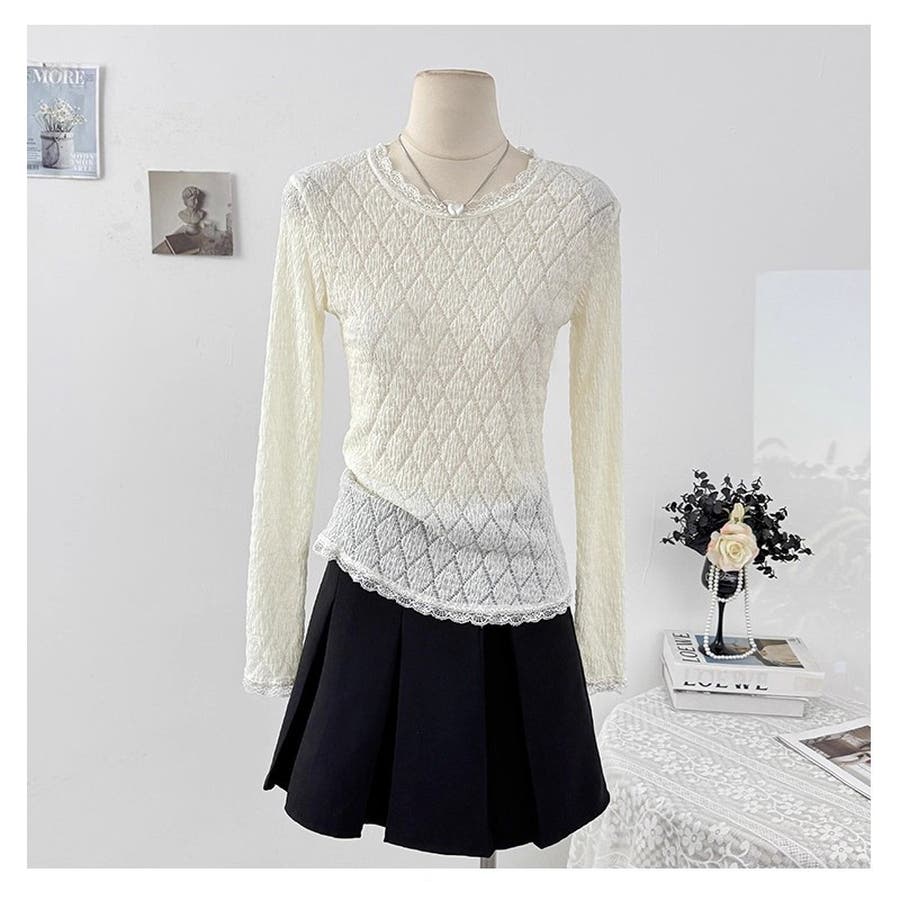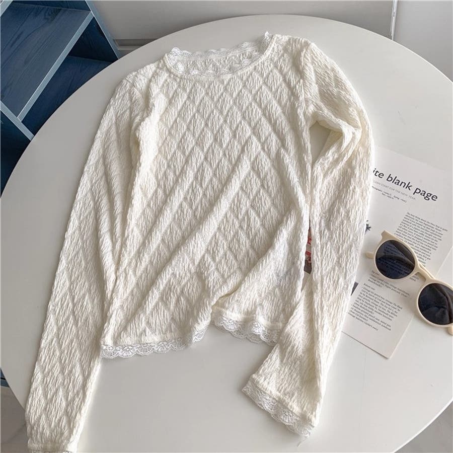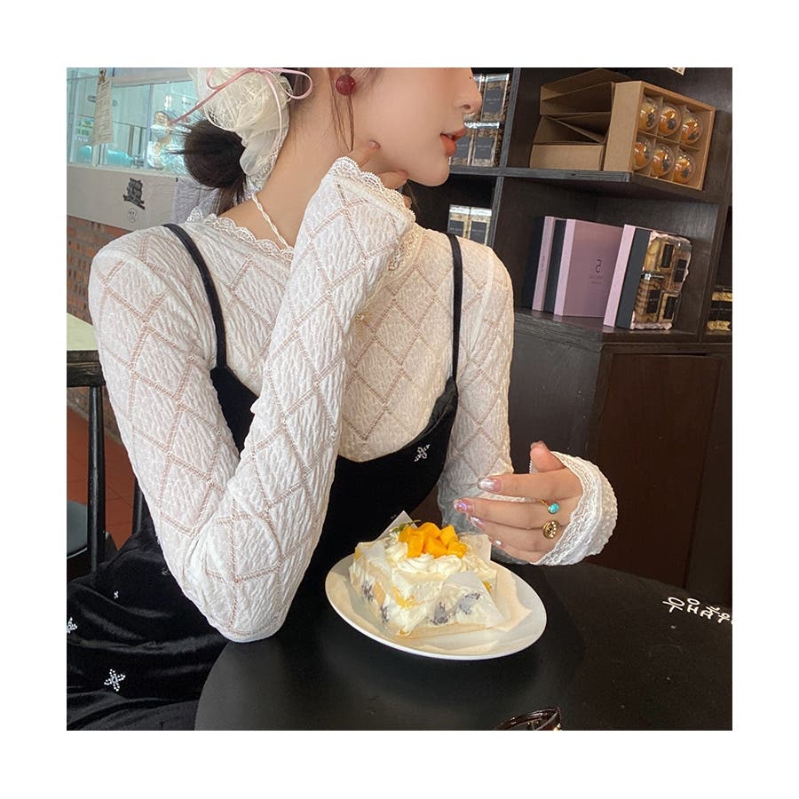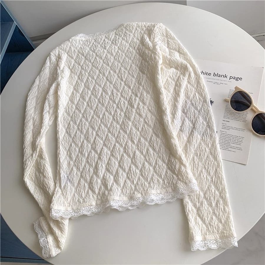 上品な透け感が女性らしさを引き立て、コーディネートに華やかさをプラスしてくれるレーストップスです。