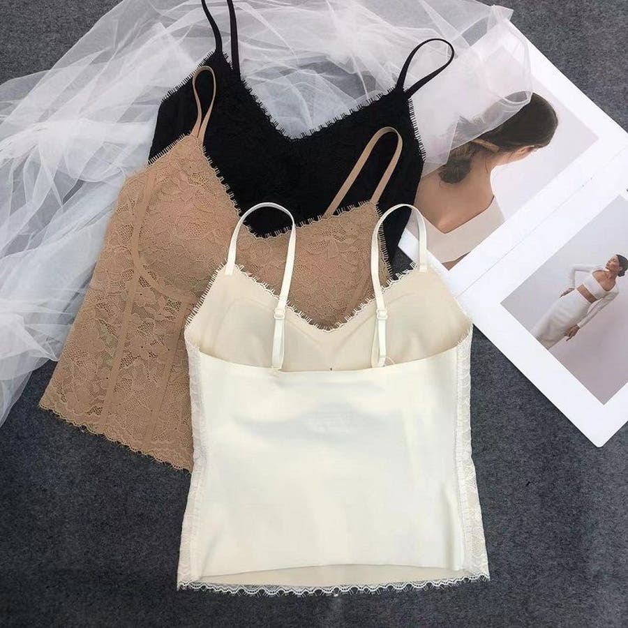 レースキャミソール レディース カップ付き