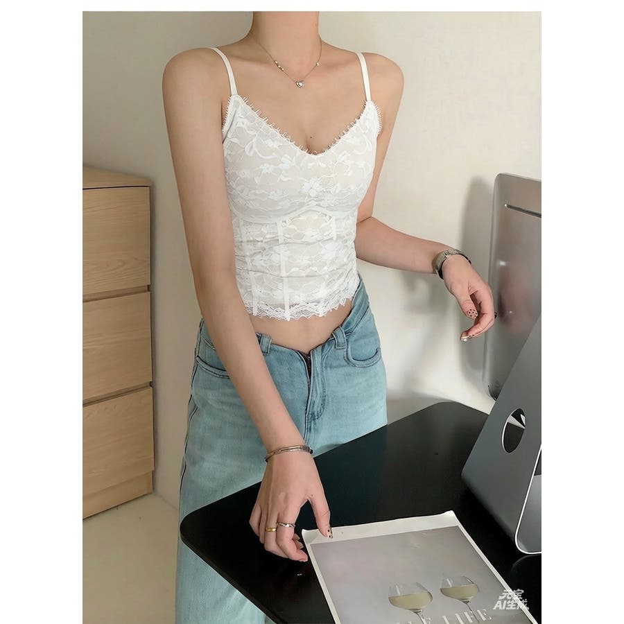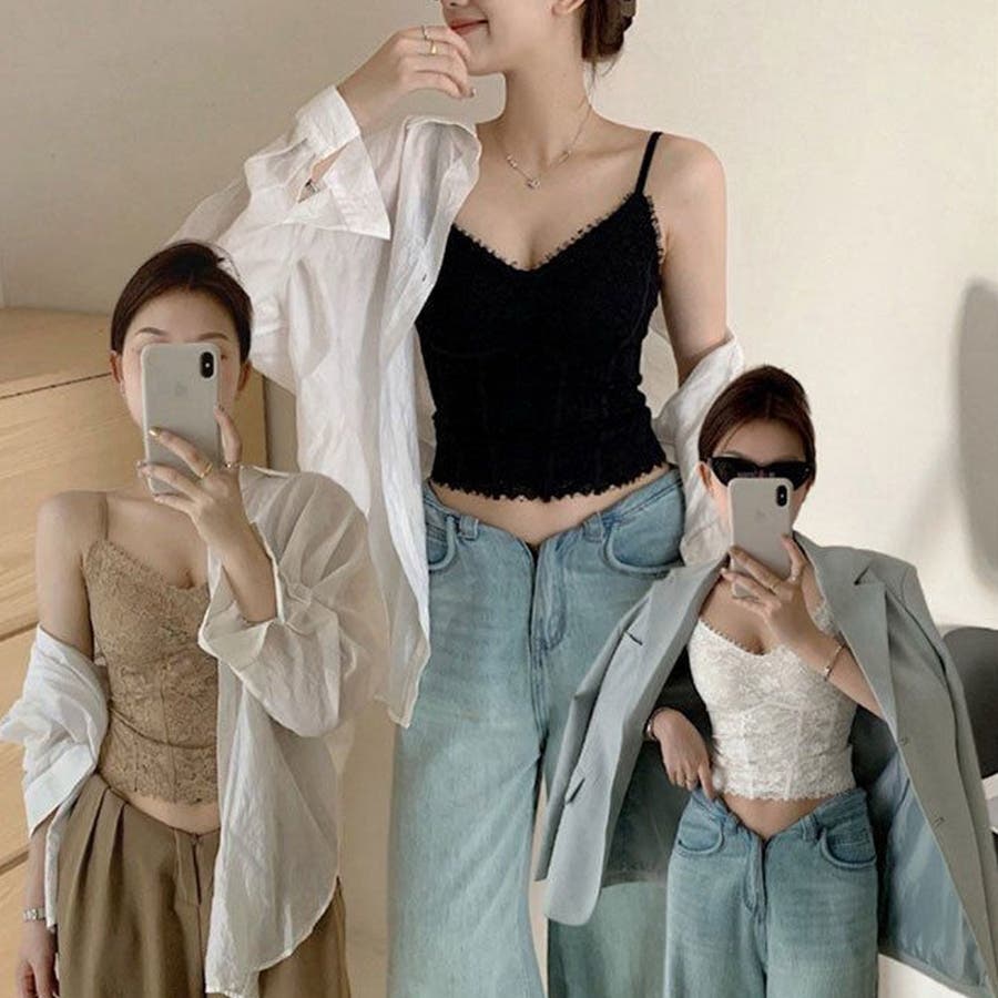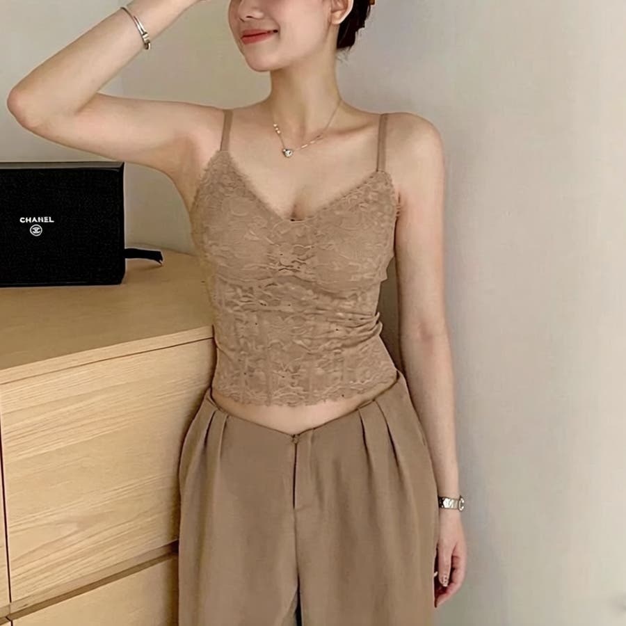 繊細なレースデザインが魅力のレディースキャミソール。女性らしいシルエットを引き立てるフェミニンなレーストップスです。