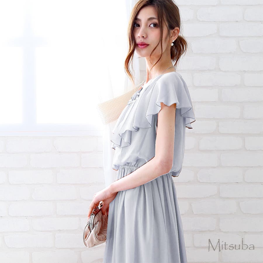 4色フリルたっぷりロングドレス ドレス パーティドレス