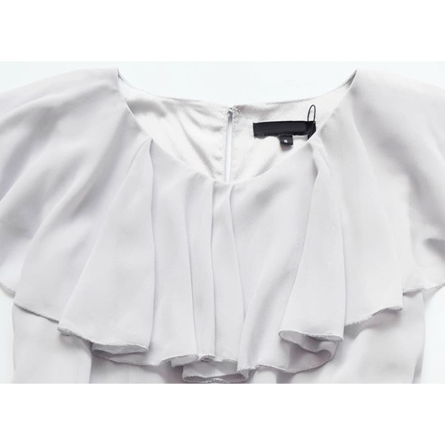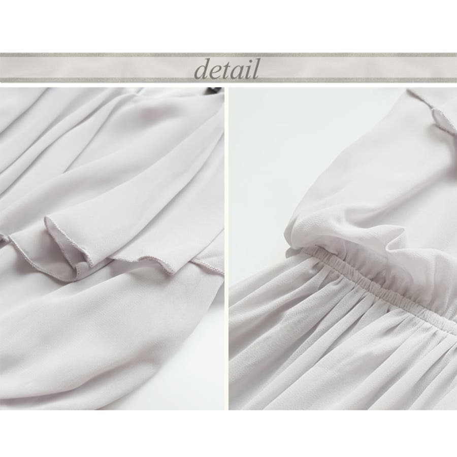 肩フリルシフォンが揺れて、フェミニンなロングスタイルが大人可愛く魅せます。